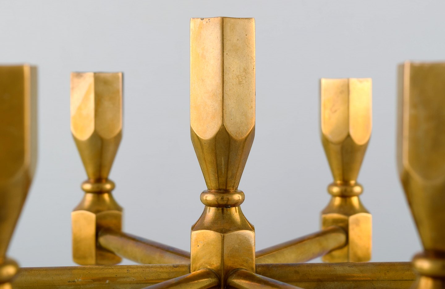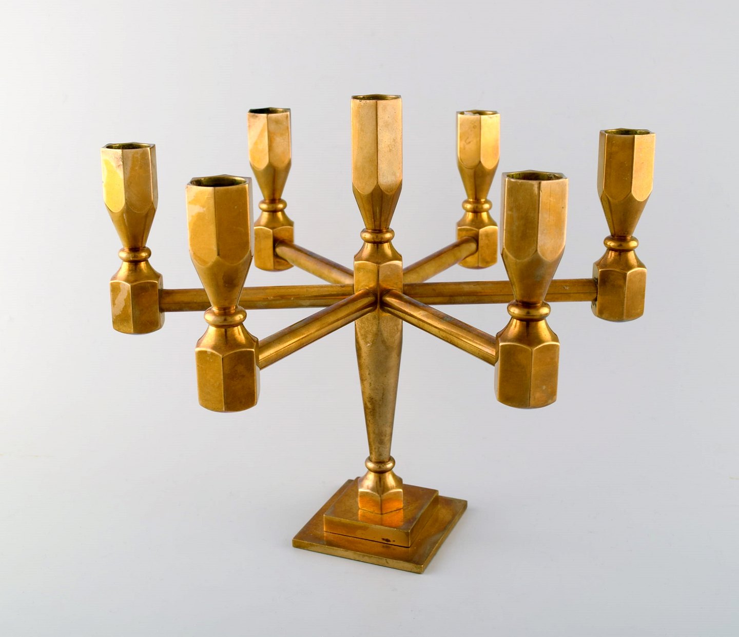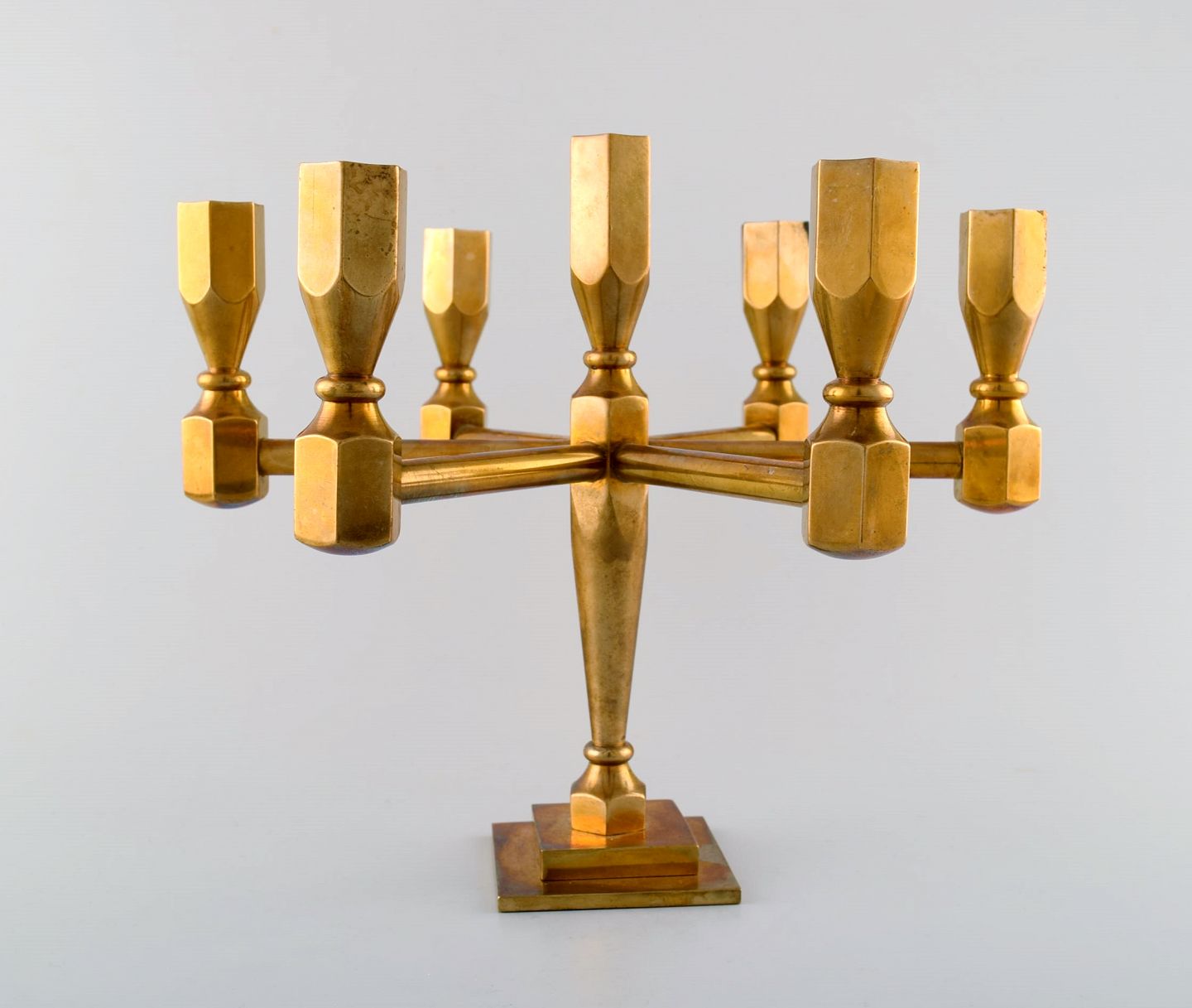 Gusum metal, stage i messing til syv lys. Svensk design. Måler : 24 cm. x 28 cm. I perfekt stand.