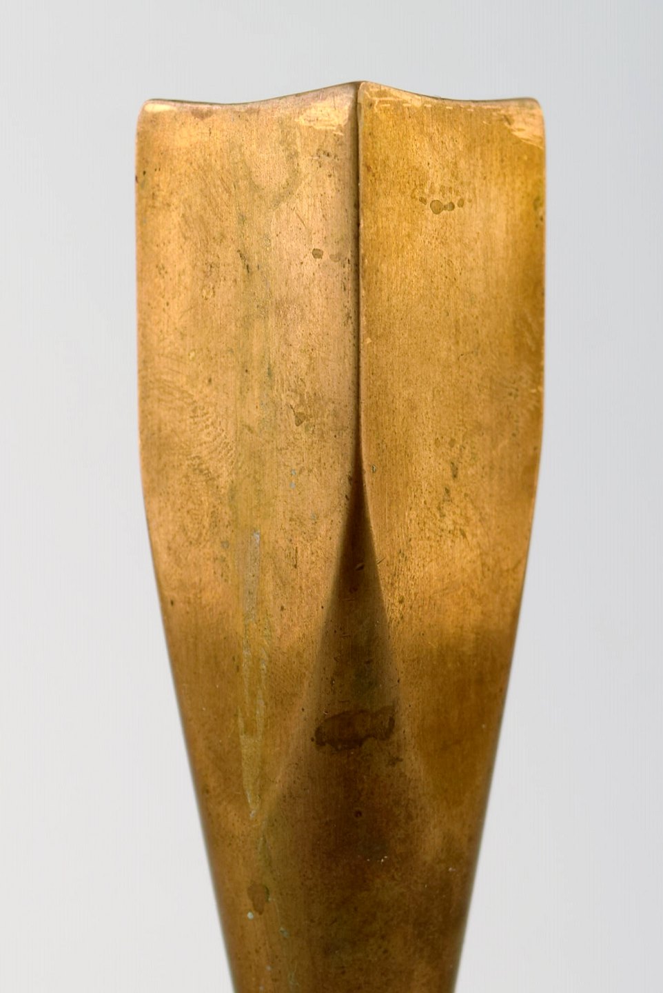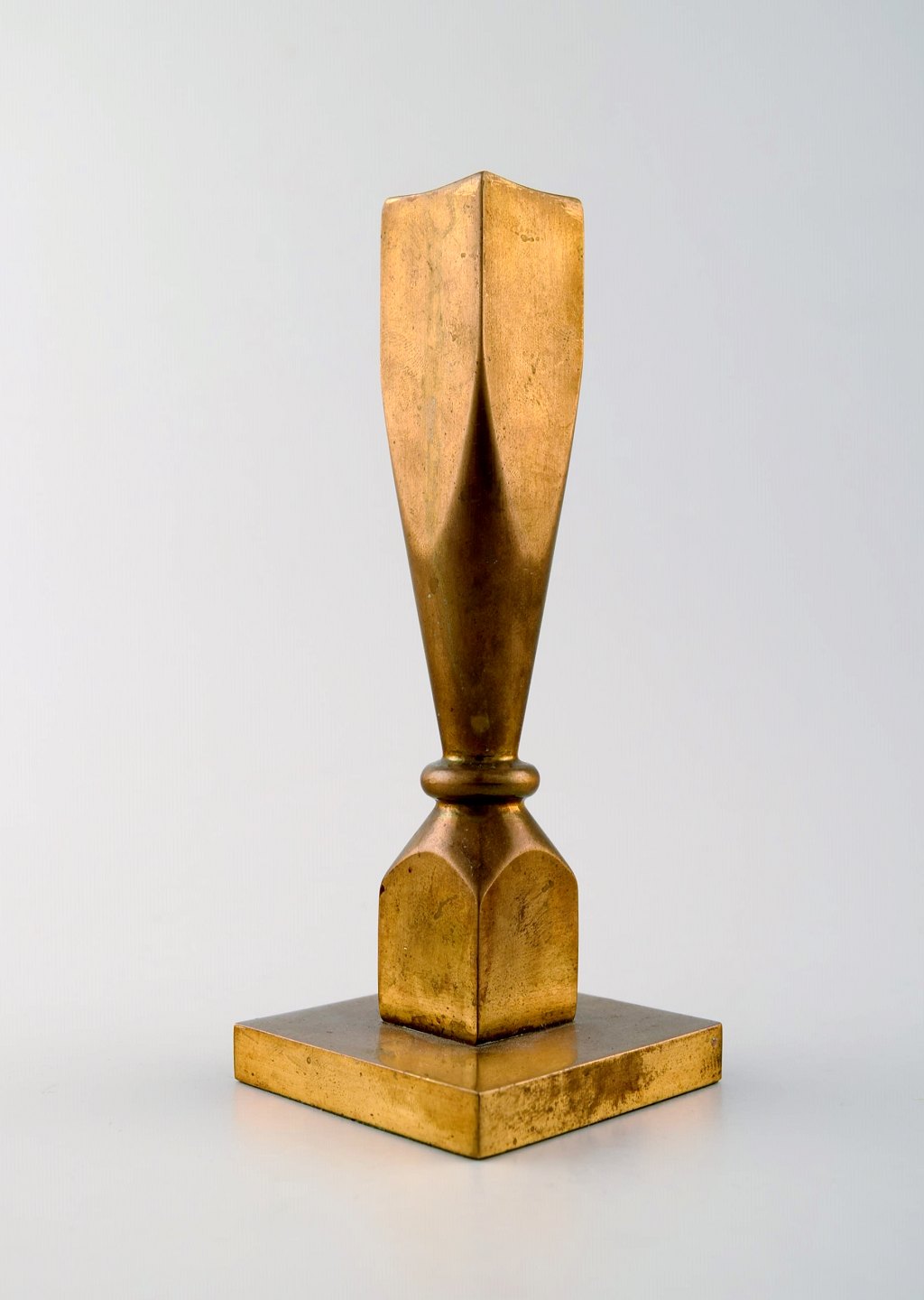 Gusum metal, lysestage i messing. Svensk design. 15 cm. høje. Diameter (base) 6,2 cm. I perfekt stand.
