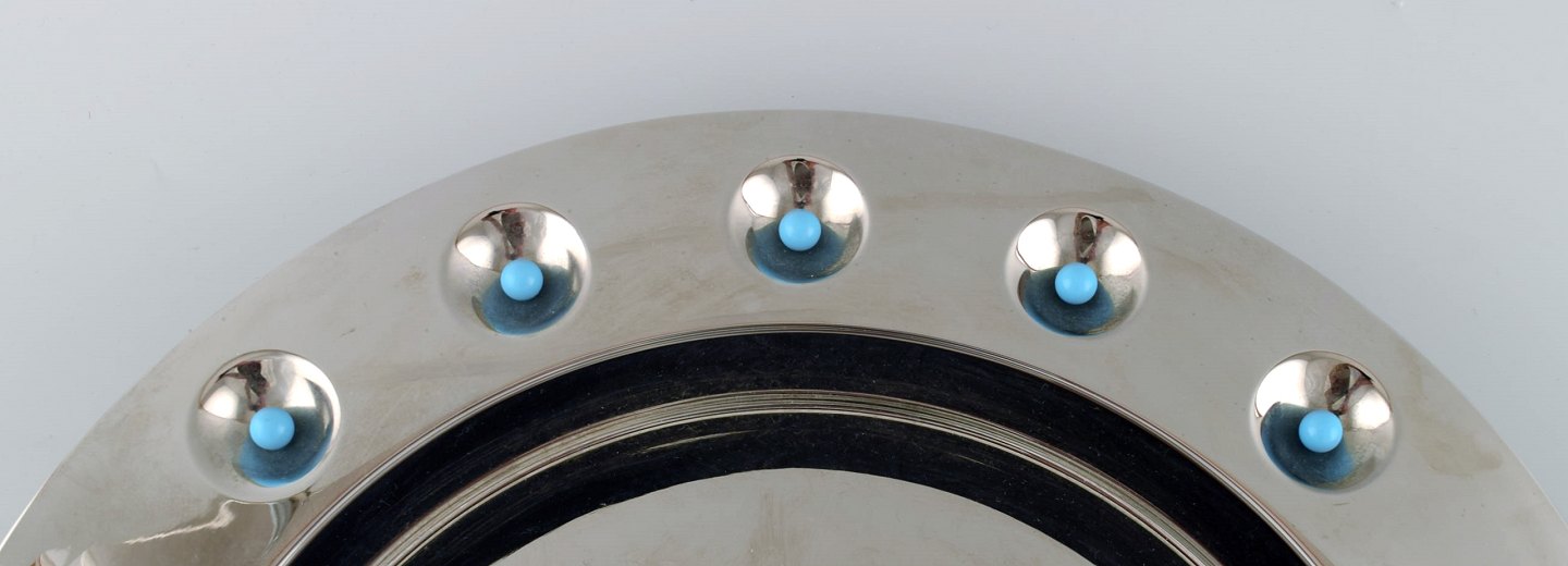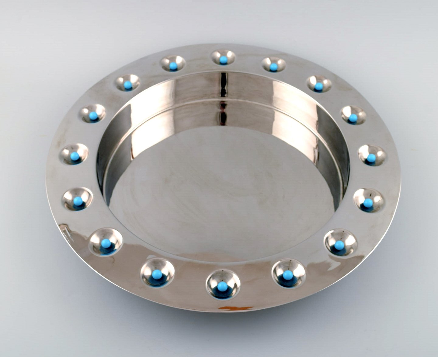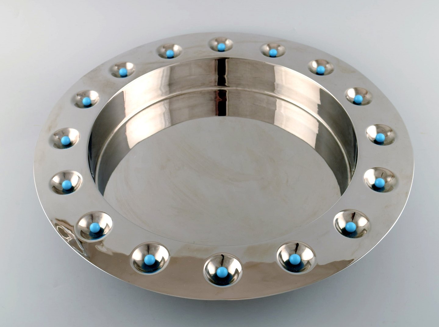 TOBIA SCARPA for Morellato, Italy, a large modern design metal bowl with turquoise balls. Diameter 42 cm. In perfect condition. Marked.