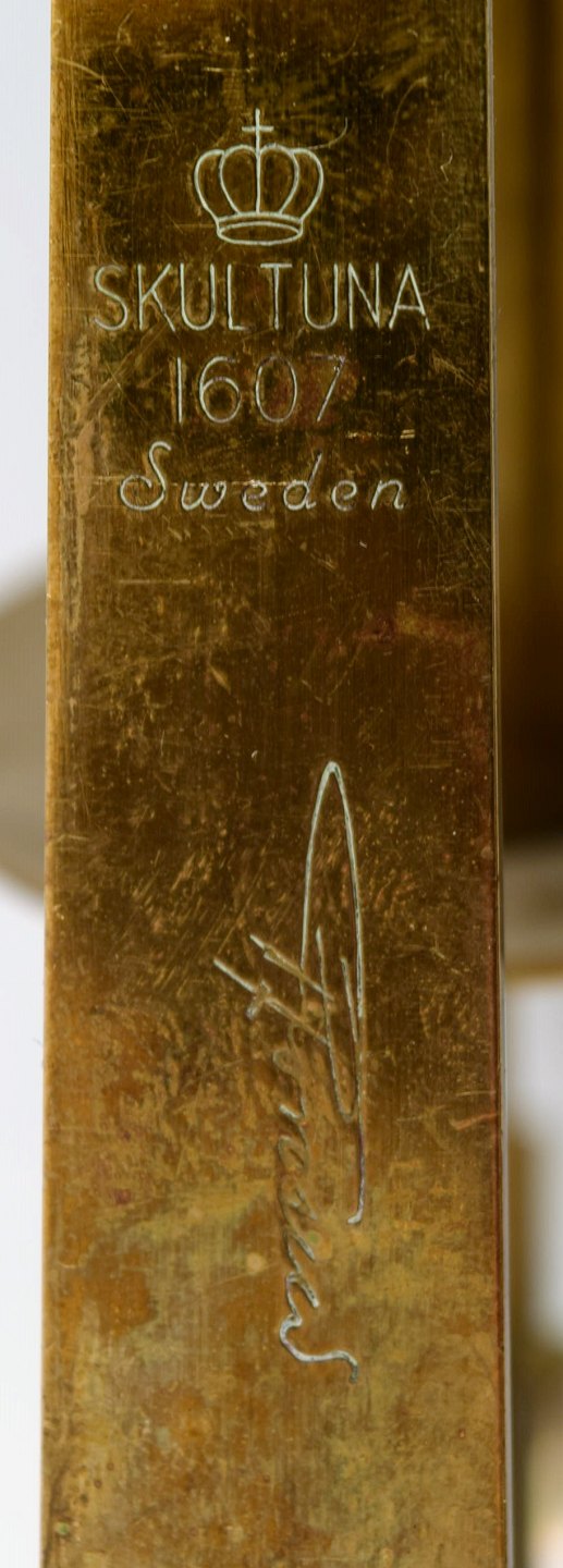 A pair of Skultuna, Sweden, brass candlesticks. Model 1607. Designer: Pierre Forsell. Stamped. In perfect condition. 48.5 cm. high.