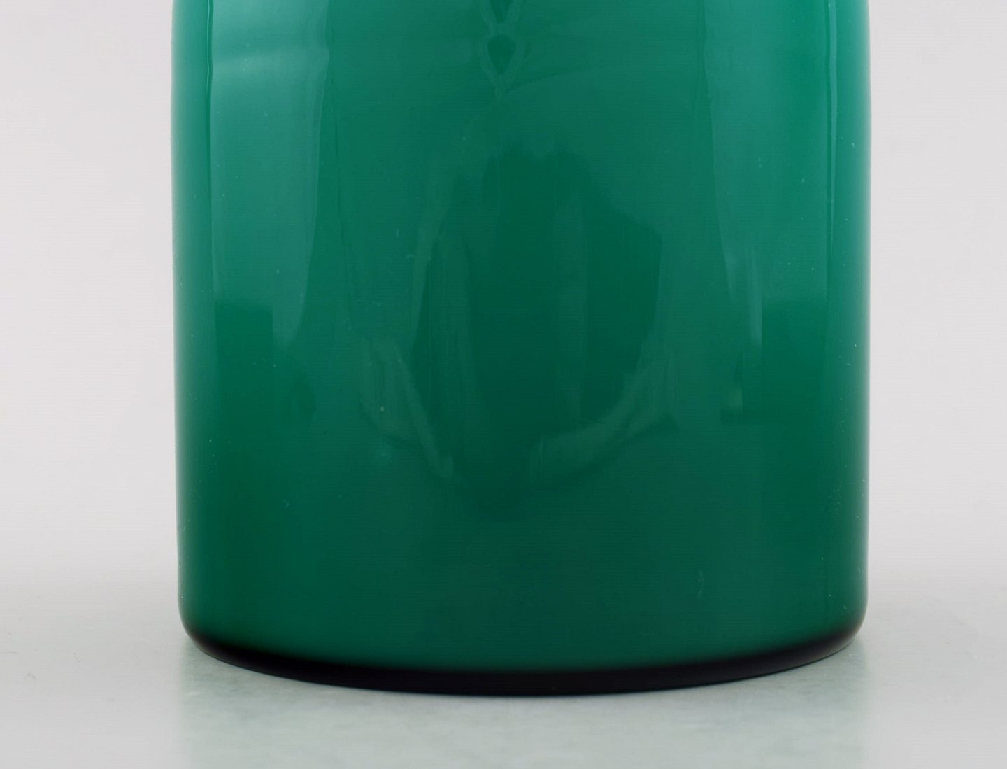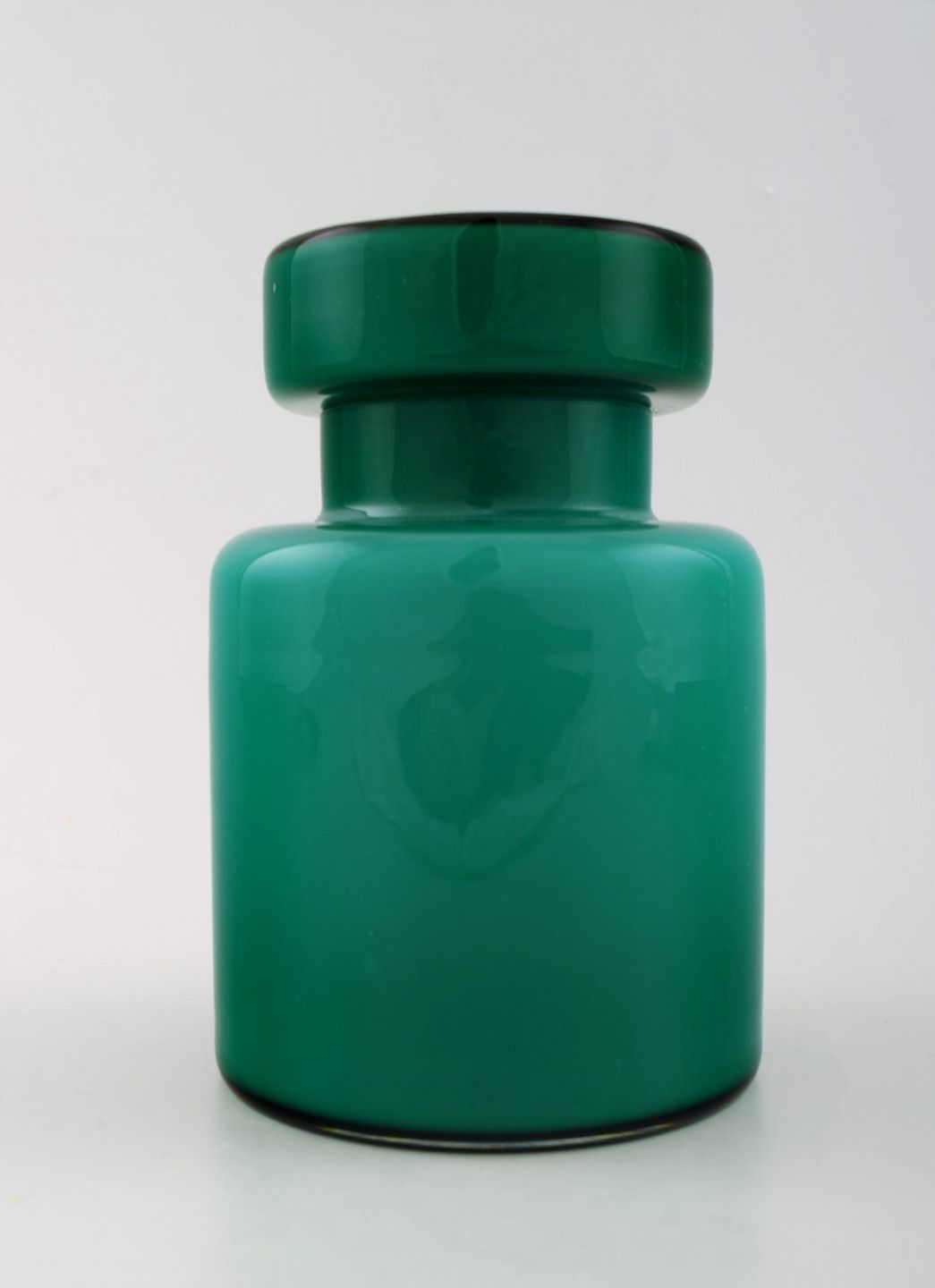 Murano Vistosi Green Lidded Jar, 1970 s. Source: Vistosi Origin: Italy Method: Hand-blown. Labelled. In perfect condition. Measures: 15 cm. x 10 cm.