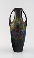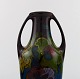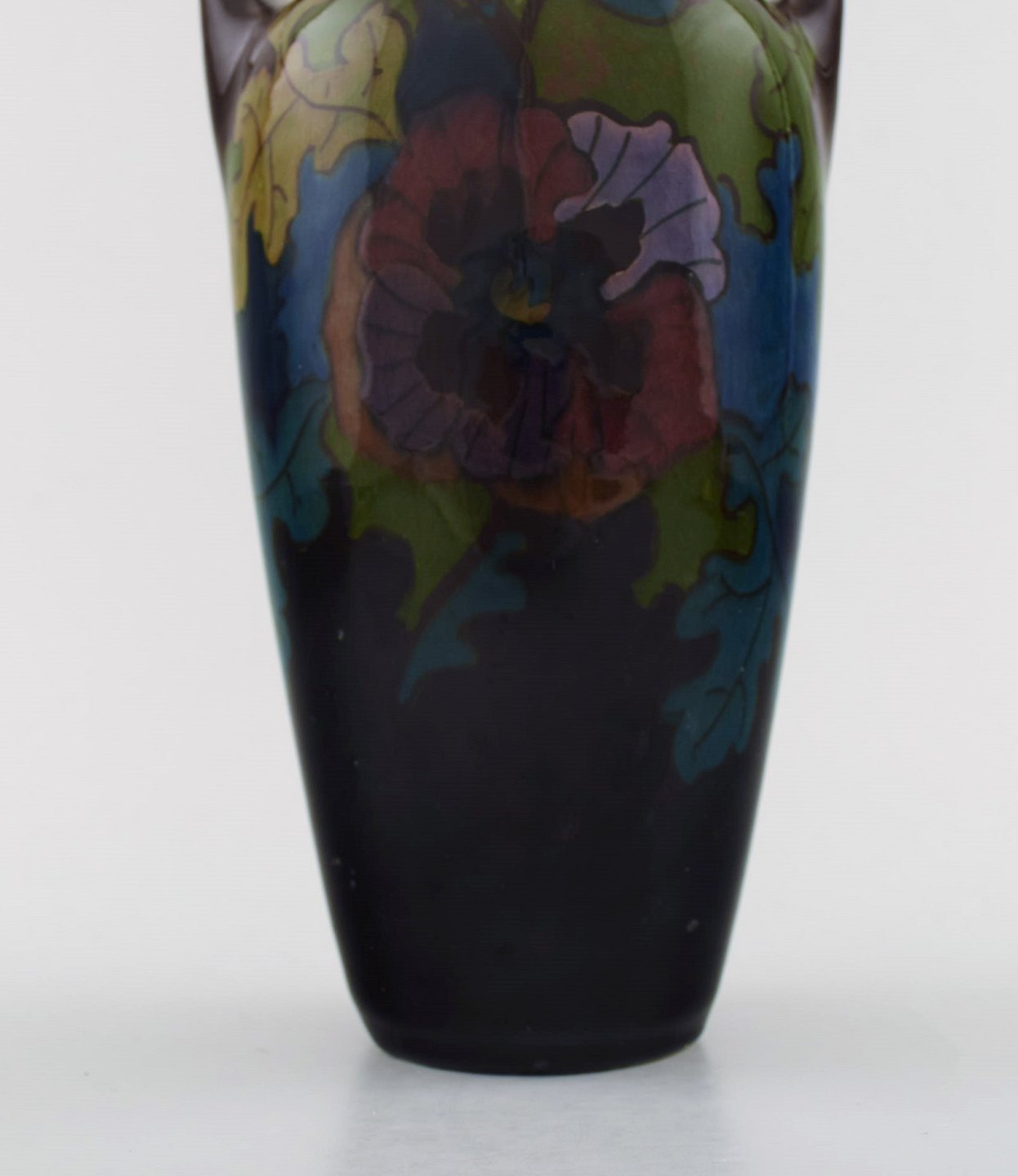 Elrakka, Arnhem, Holland, art nouveau ceramic vase with handles. Hand painted with flowers. Measures: 25 cm. x 11 cm. Stamped. In perfect condition.