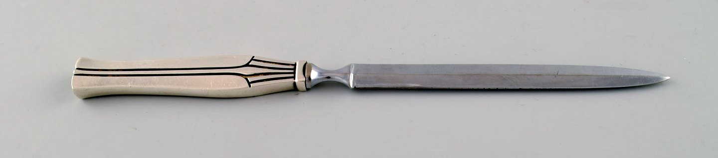 Dansk tretårnet sølv, Art Deco brevkniv. Måler 22 cm. I flot stand. Stemplet.