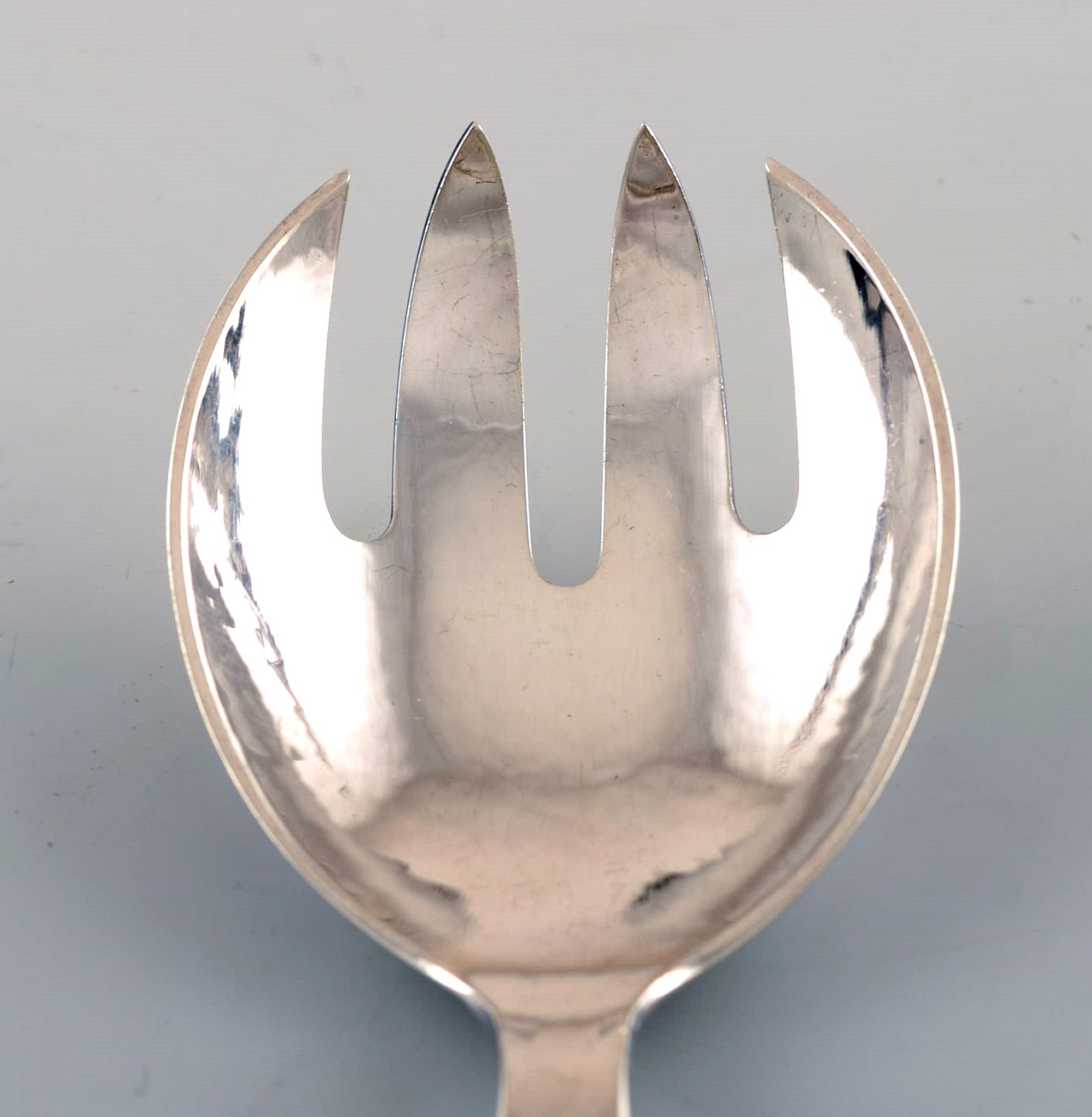 Georg Jensen. Bestik, Saga nr. 22, hammerslået Sterlingsølv salatsæt i helsølv.