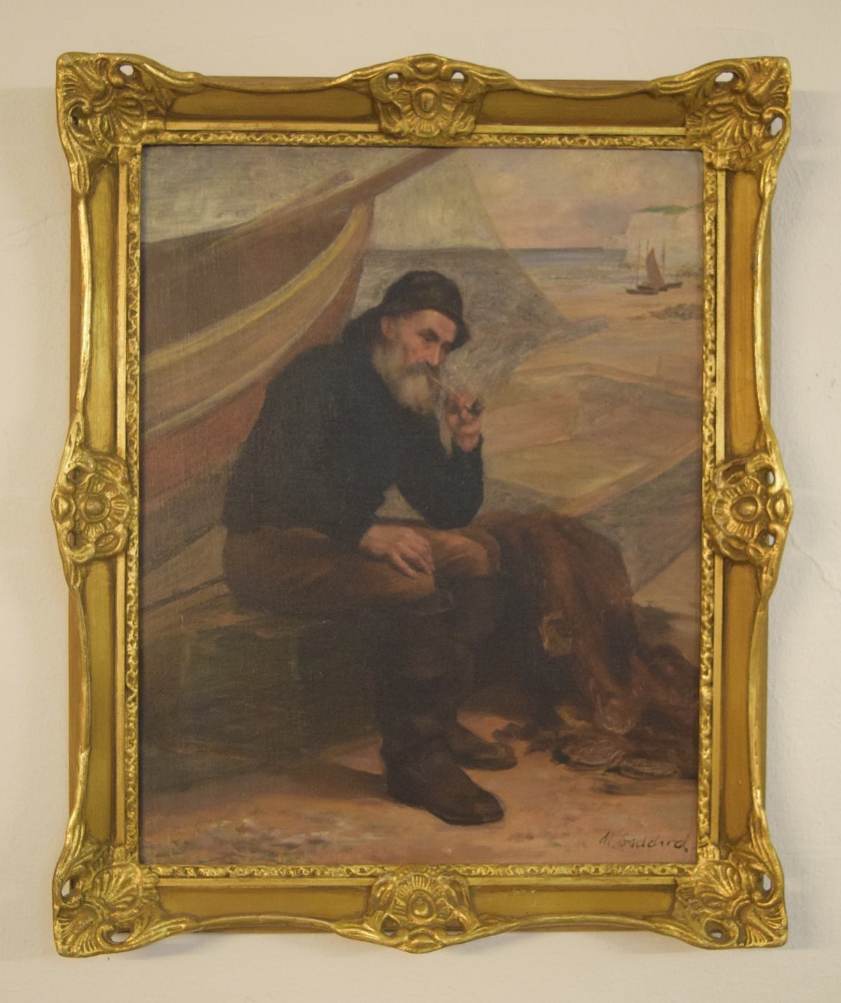 Goddard, Britisk maler. Olie maleri på lærred, fiskerportræt. Ca. 1890´erne. Signeret. I flot stand. Måler (uden rammen) 50 x 39 cm. Rammen måler 6 cm.