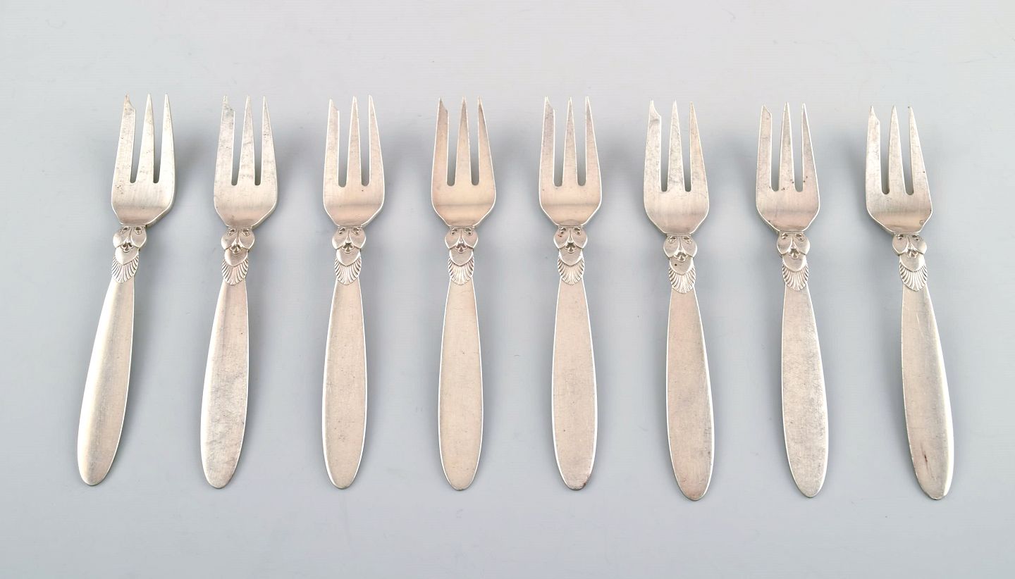 Georg Jensen Sterlingsølv 'Kaktus' bestik. Kagegafler. 8 stk. haves. Måler 13 cm. I perfekt stand. Stemplet. Designet af Gundorph Albertus i 1930.