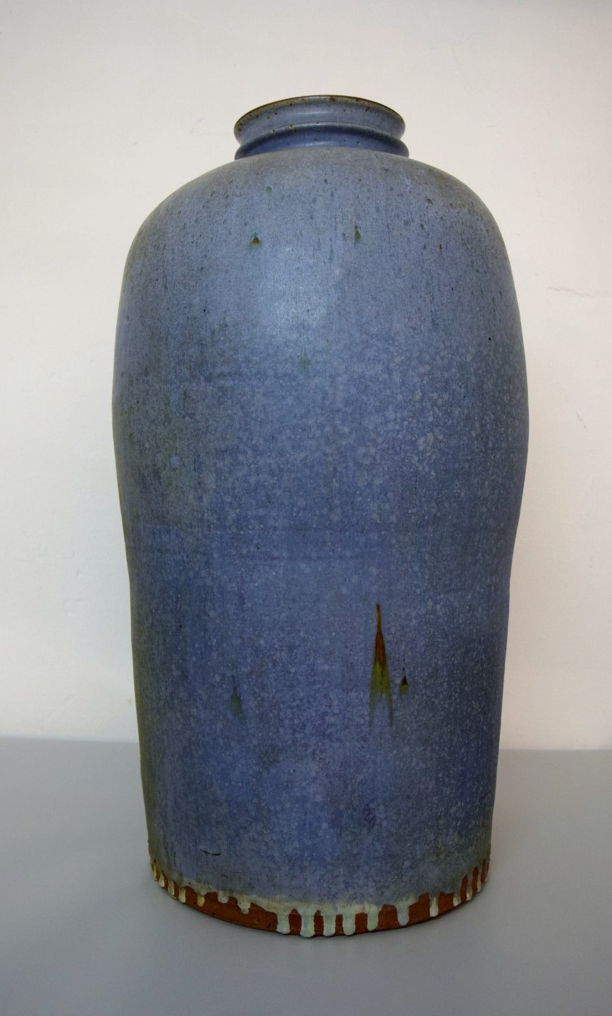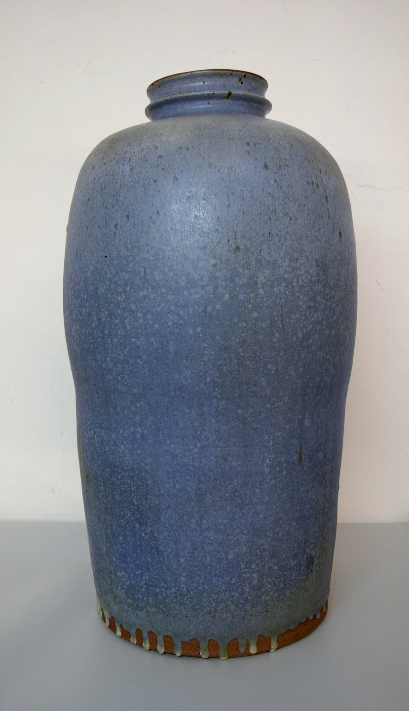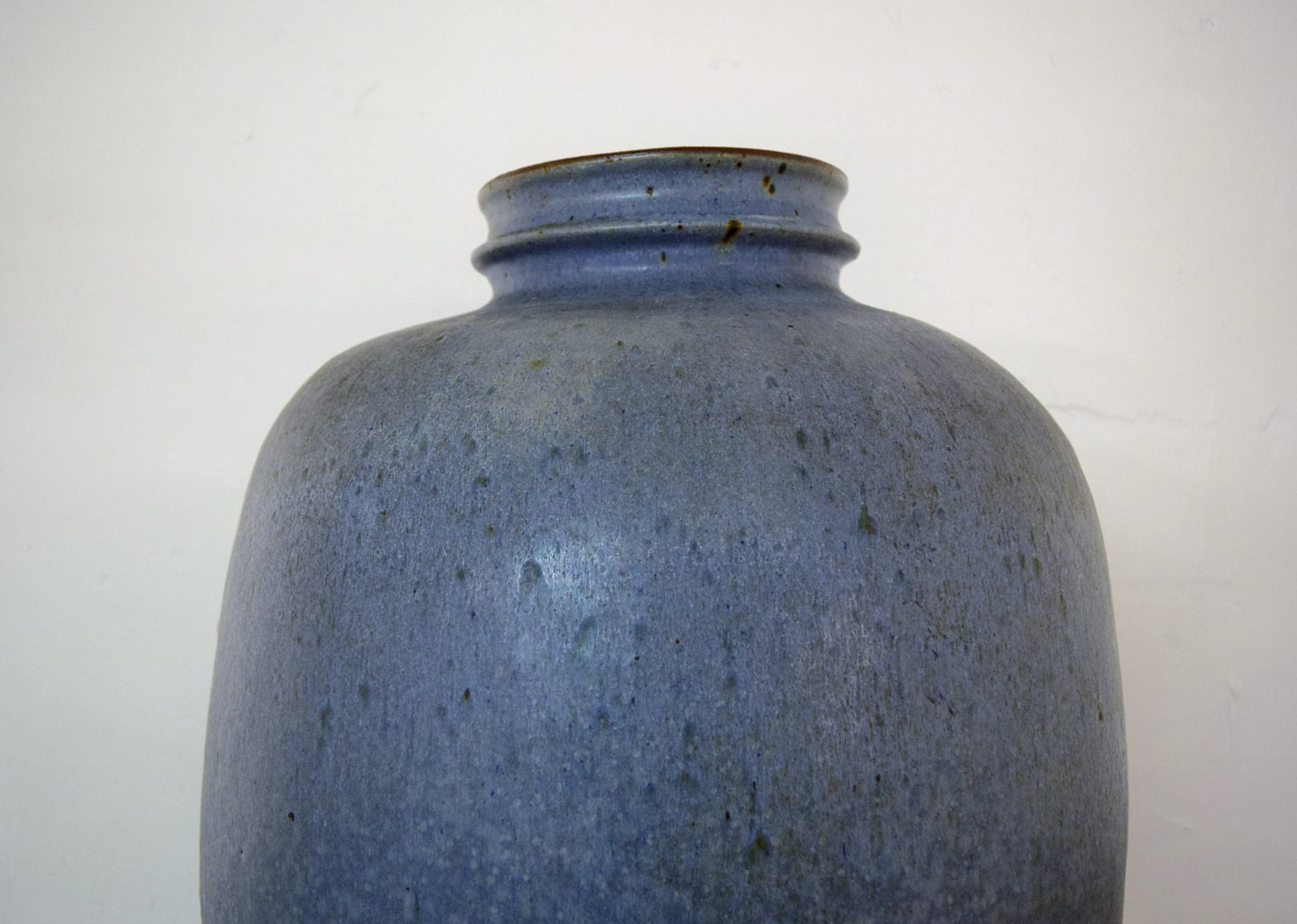 Helle Allpass (1932-2000). Kolossal gulvvase af glaseret stentøj i smuk blå glasur. Dateret 1987. Signeret. Højde 90 cm. Diameter 50 cm. I flot stand.
