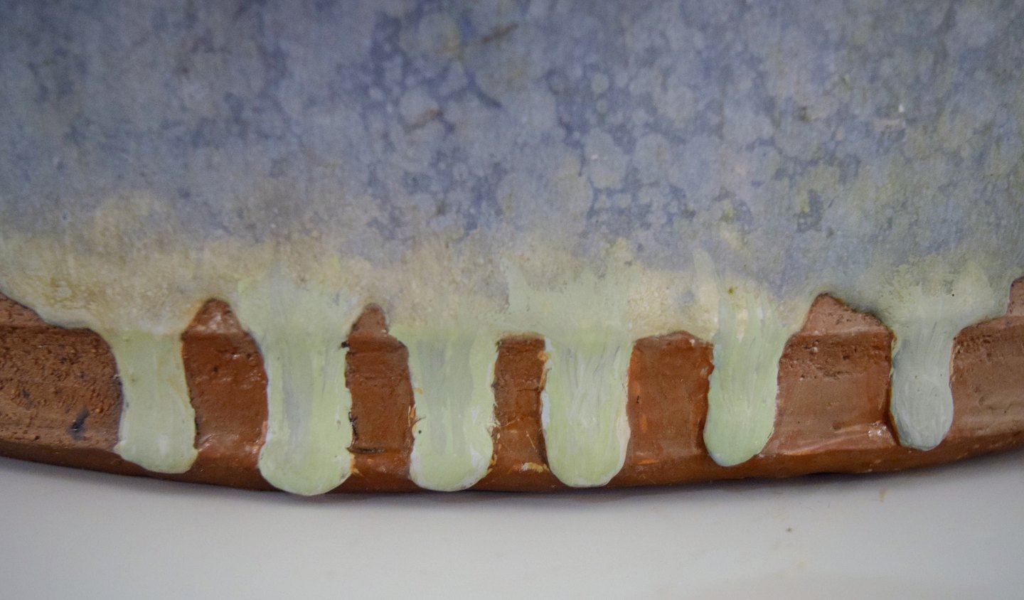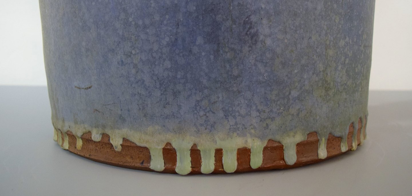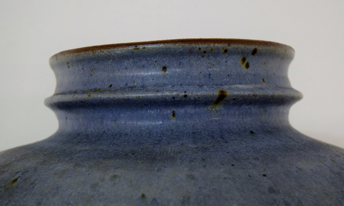 Helle Allpass (1932-2000). Kolossal gulvvase af glaseret stentøj i smuk blå glasur. Dateret 1987. Signeret. Højde 90 cm. Diameter 50 cm. I flot stand.