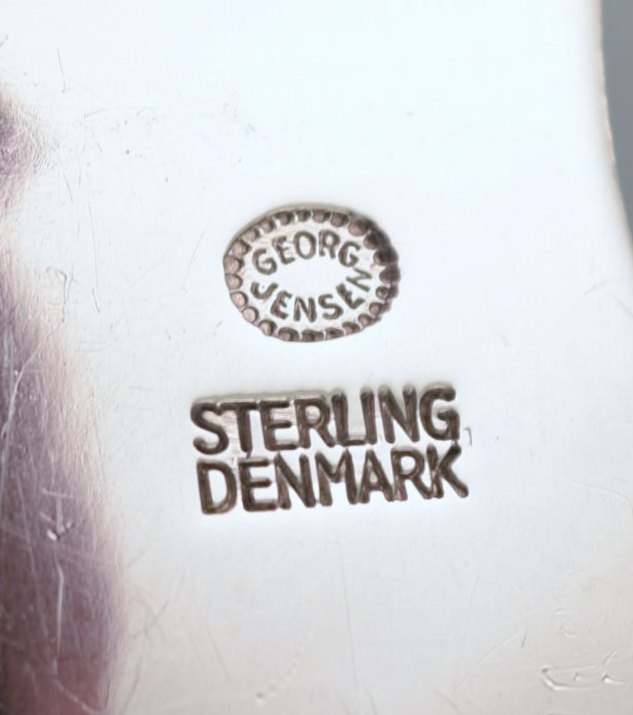 Georg Jensen. Continental (Antik) stor serveringsske i helsølv, sølvbestik, hammerslået. Bestikket er formgivet af Georg Jensen og designet i 1906. I perfekt stand. Måler : 26 cm.