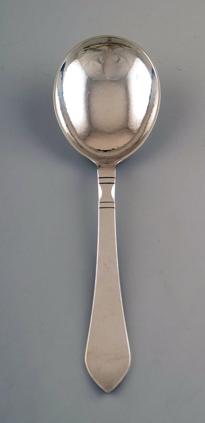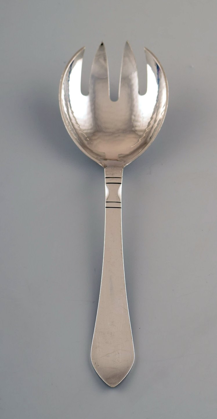 Georg Jensen. Continental (Antik) salatsæt i helsølv, sølvbestik, hammerslået.