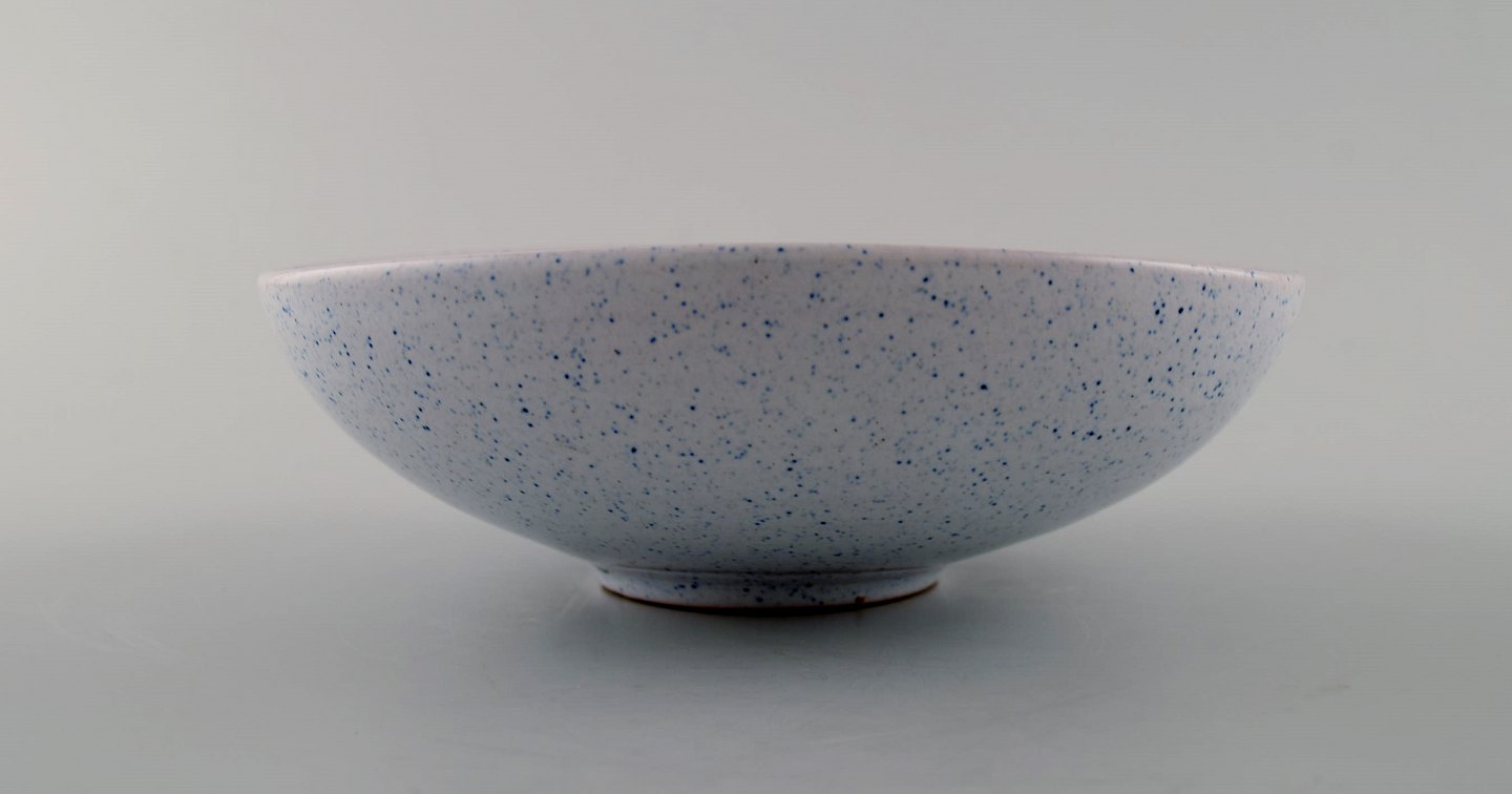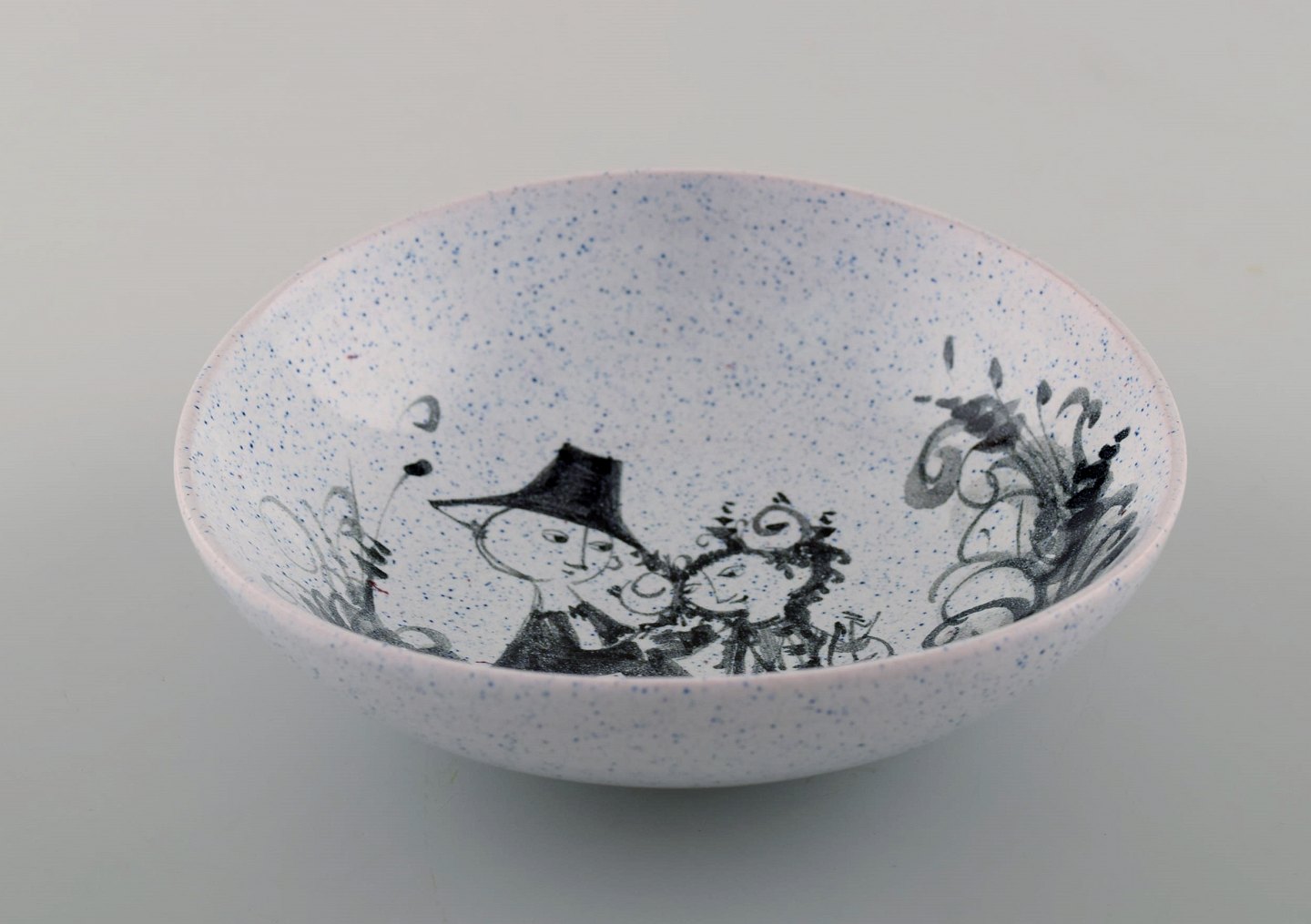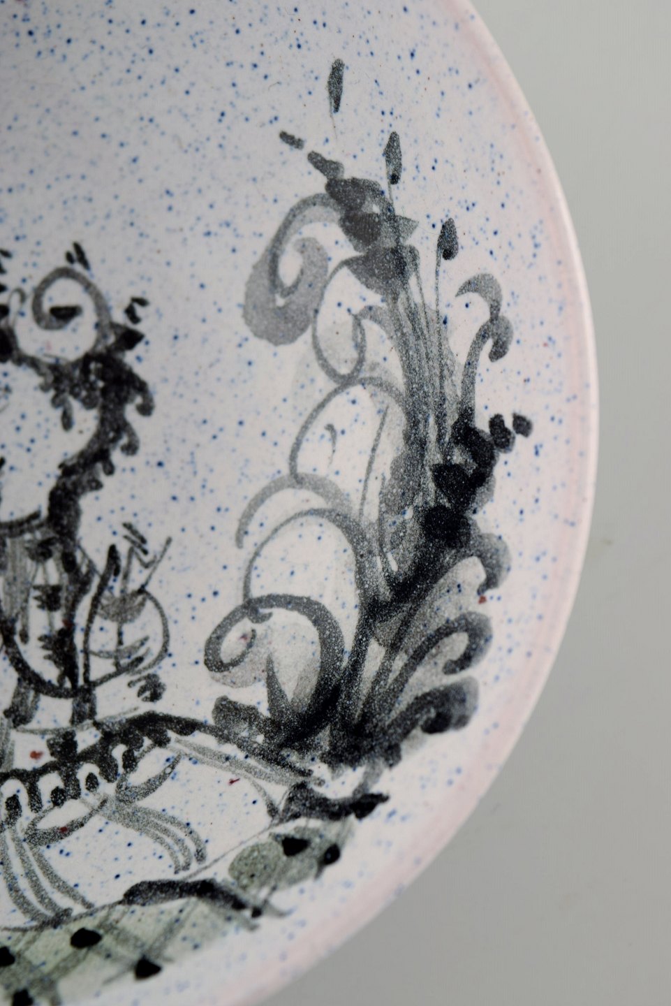 Bjørn Wiinblad, eget værksted: Sjælden og tidlig unika rund skål dekoreret med romantisk par i haven, Bjørn Wiinblad 53.