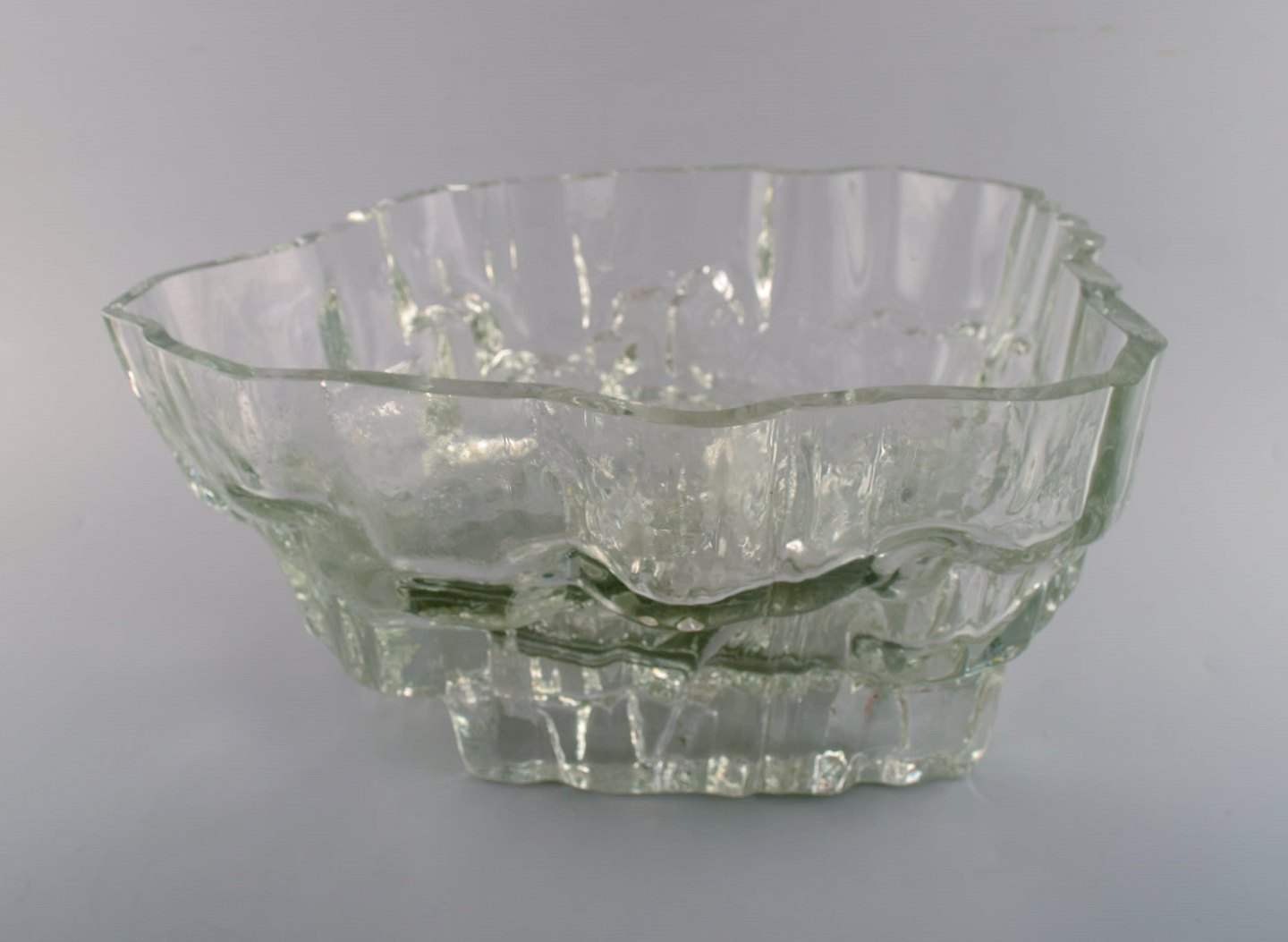 Iittala, Tapio Wirkkala huge art glass bowl. Model Number 3543. Beautiful Finnish design. In perfect condition. Measures: 36.5 cm. x 31.5 cm. 17 cm. high. Signed.