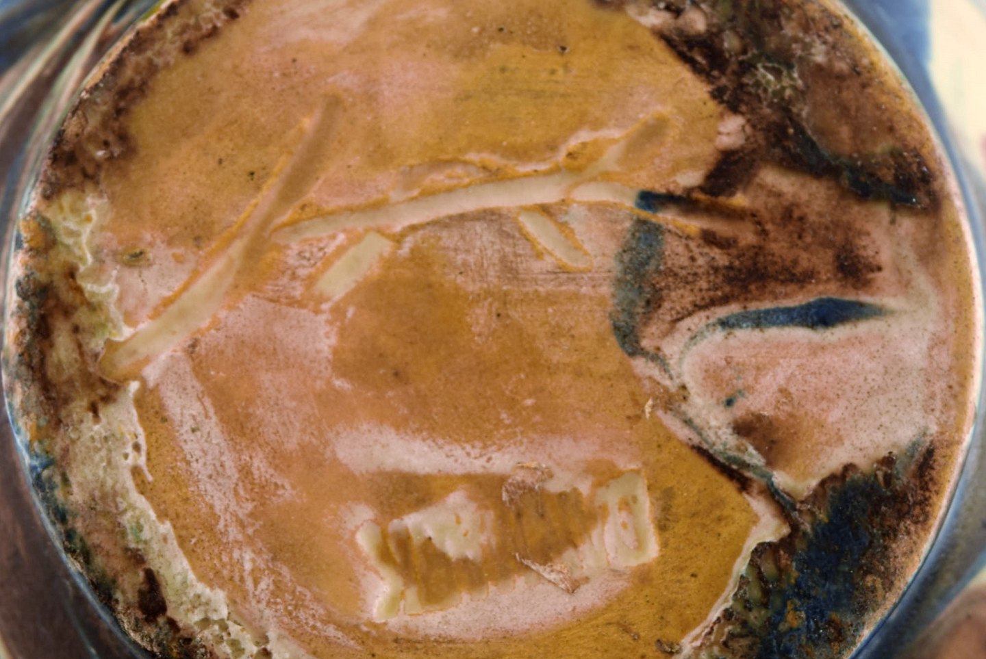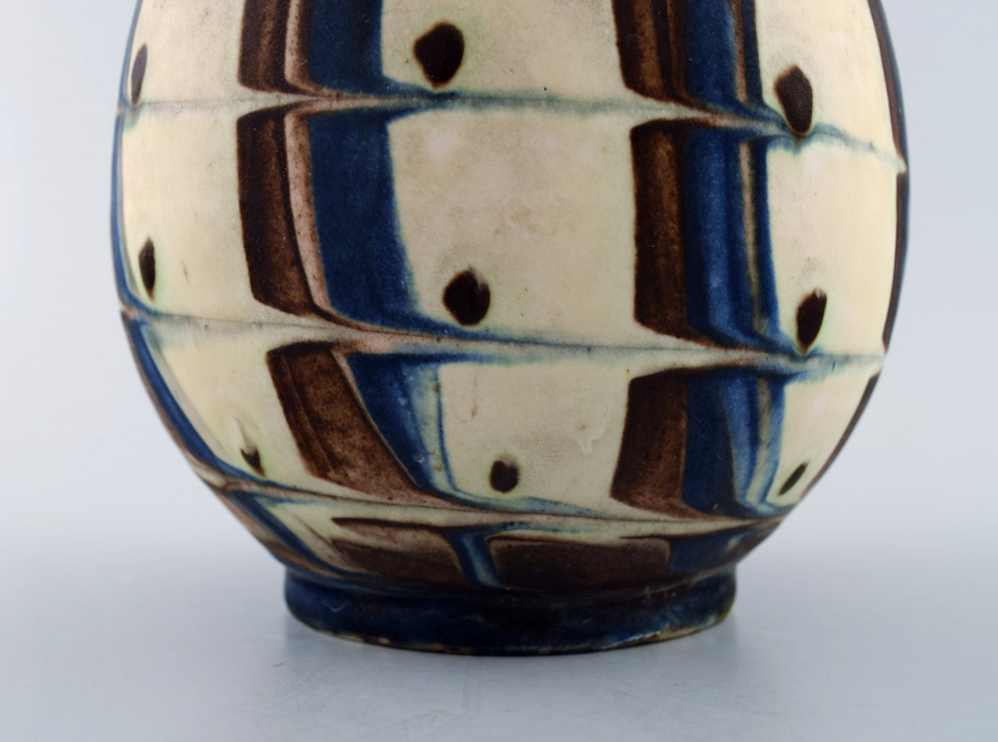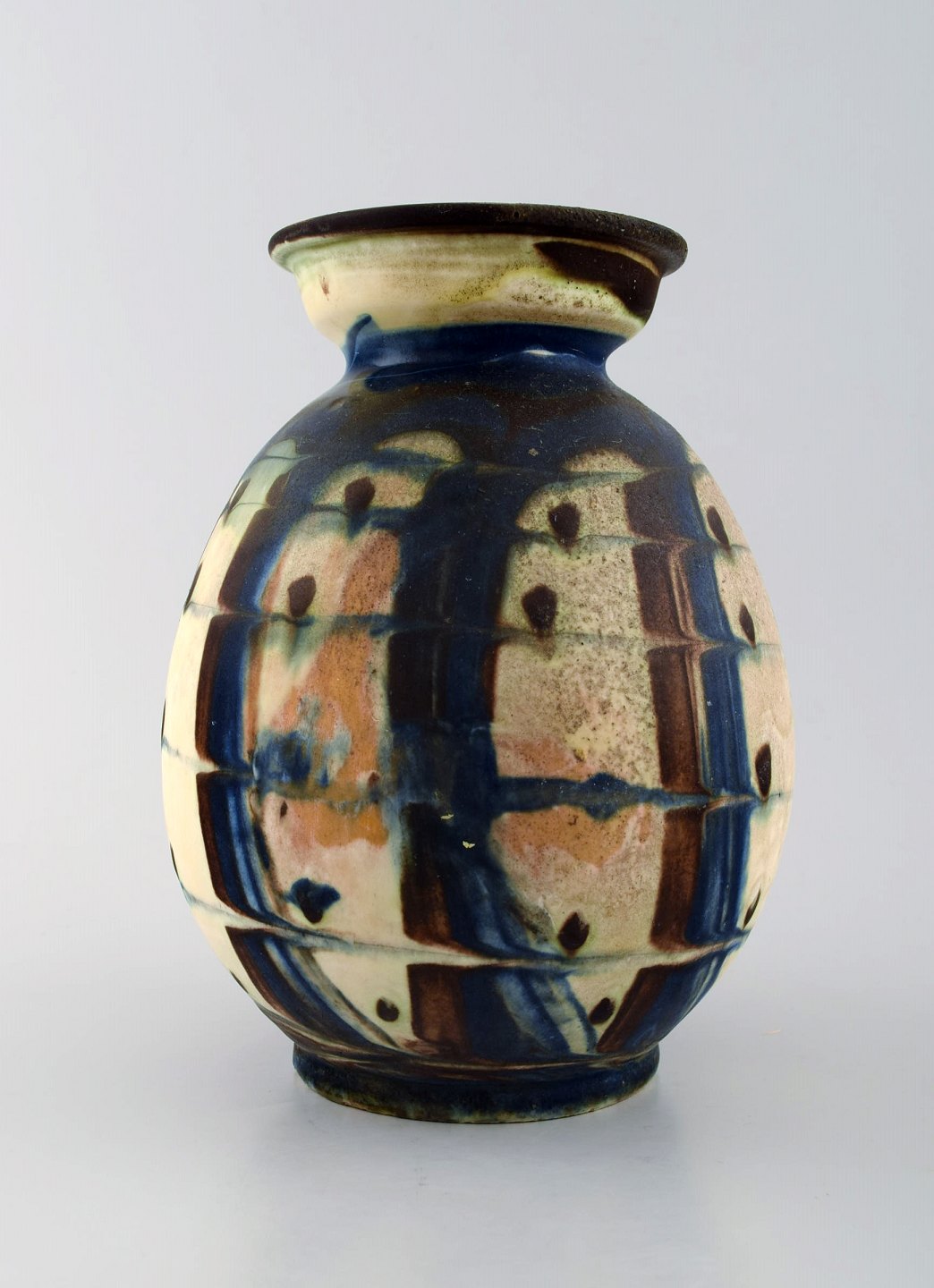 Kähler, Denmark, glazed stoneware vase in modern design. 1930/40 s. Cow horn technique. Stamped. Measures: 18 cm. X 14 cm. In perfect condition.