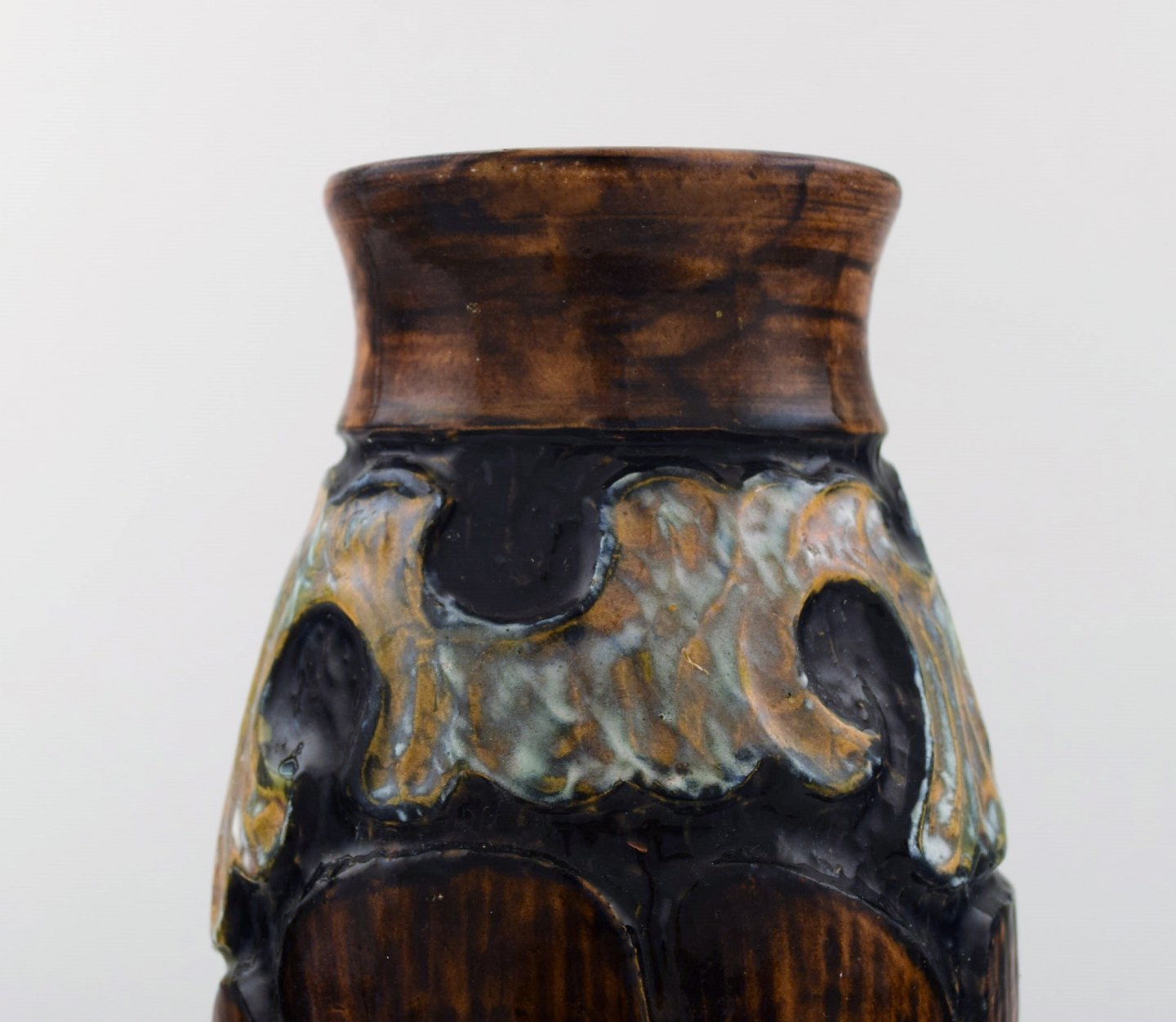Møller & Bøgely, skønvirke stor keramikvase af glaseret keramik. Ca. 1920. Stort dansk privatsamling af Møller & Bøgely keramik på lager. Måler : 21 cm. x 10 cm. I perfekt stand.