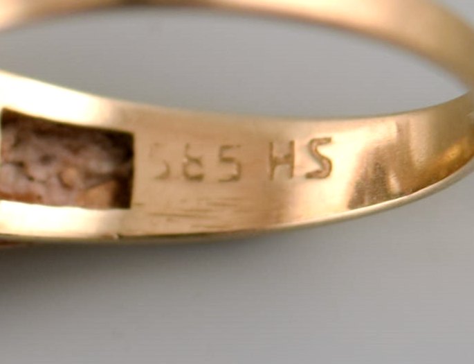 Herman Siersbøl, Denmark, 14 karat Art Deco gold ring, front with faceted stone.