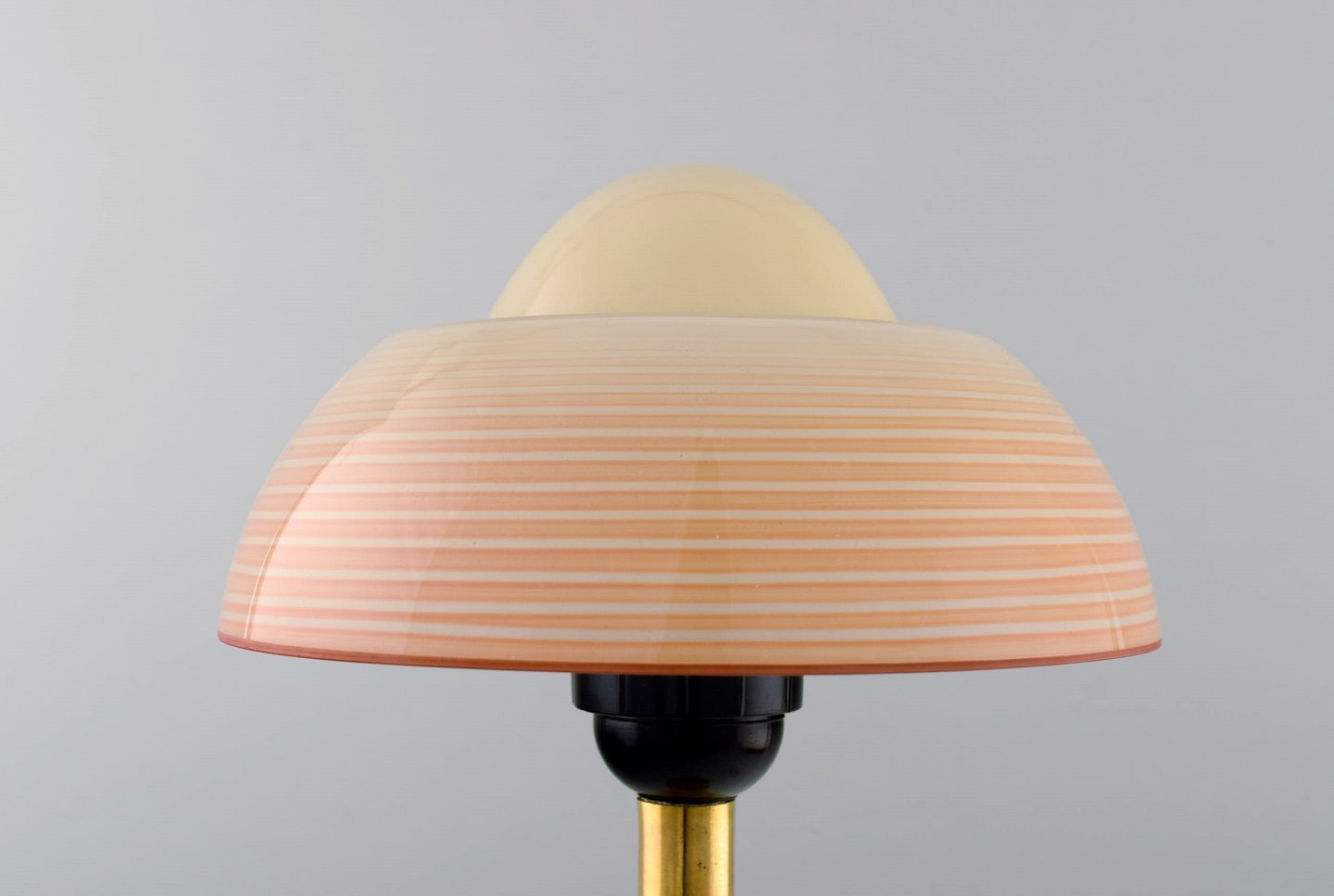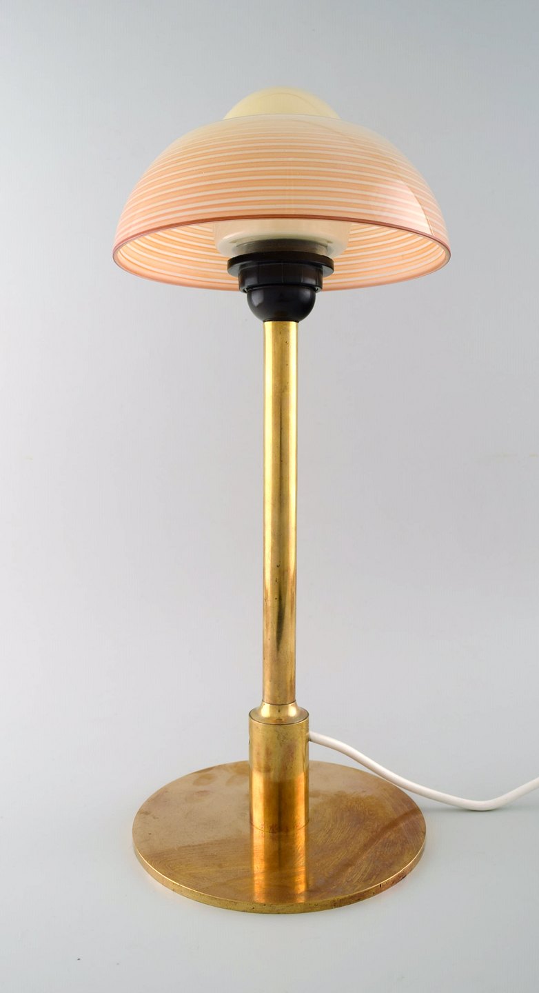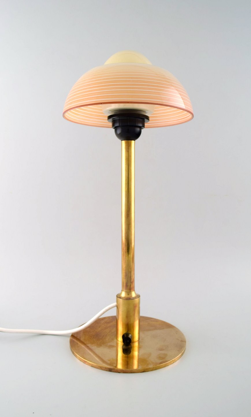 Fog & Mørup: Et par bordlamper med stamme af messing. Monteret med "Spejlæg" skærme af glas.