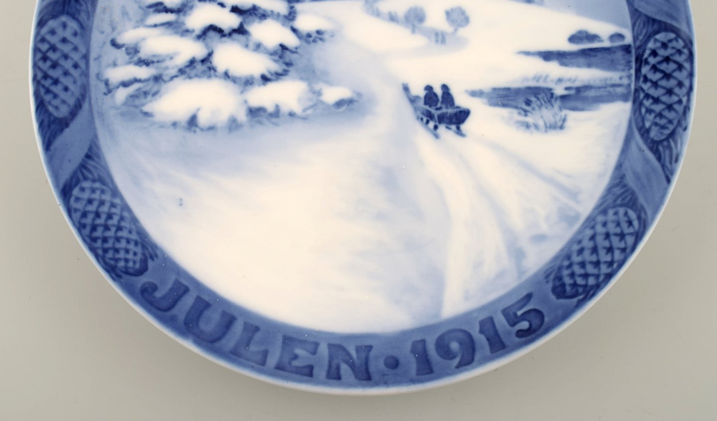 Royal Copenhagen, Kgl. Juleplatte fra 1915. I perfekt stand. 1. sortering. Måler : 17 cm.