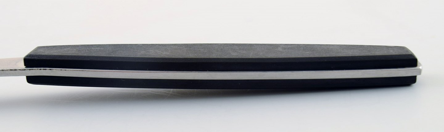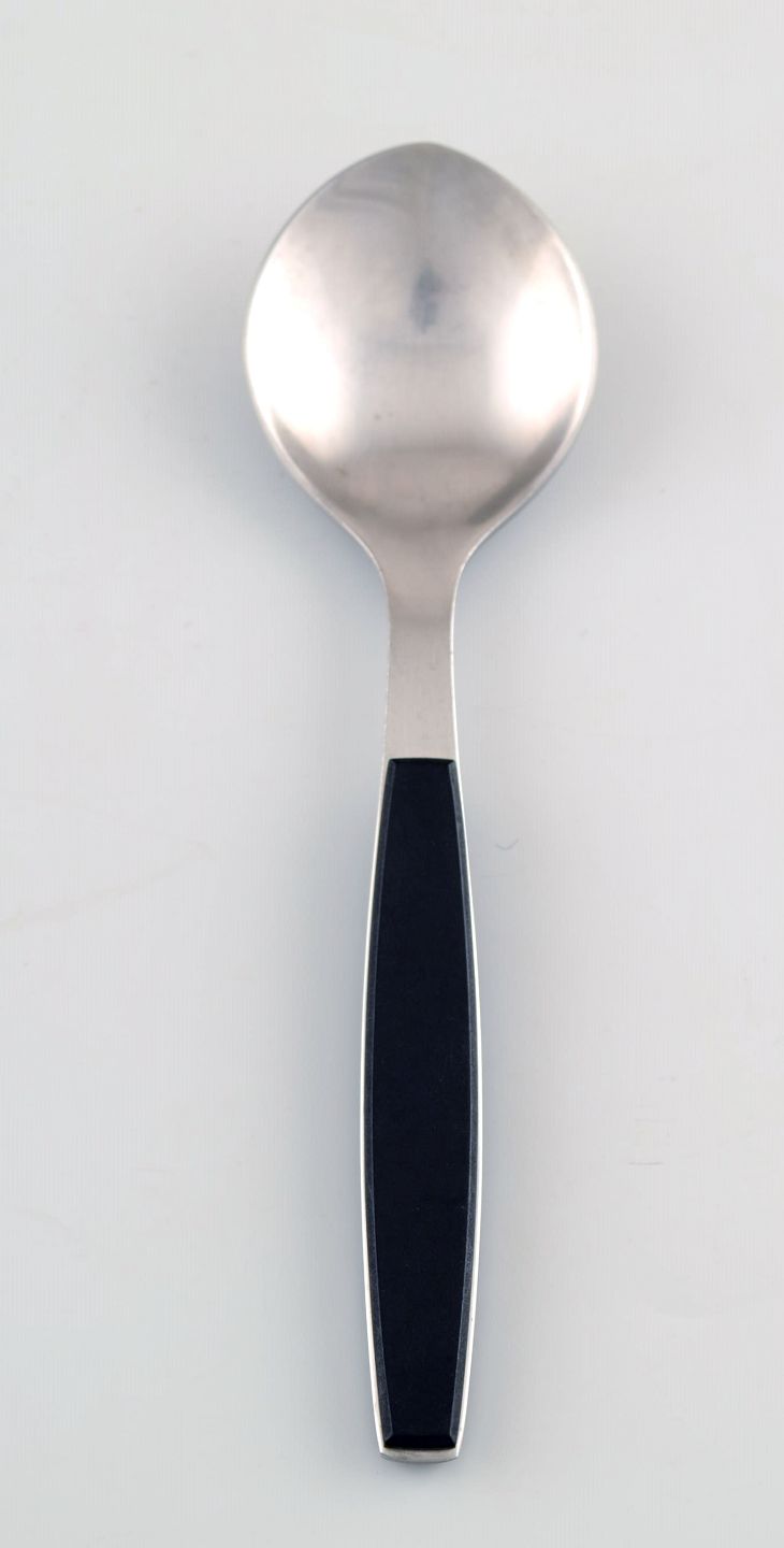 Table spoon. Henning Koppel. Strata cutlery stainless steel and black plastic. 1 piece. in stock. Manufactured by Georg Jensen. In very good condition. Danish design 1970 s. 18 cm. long.