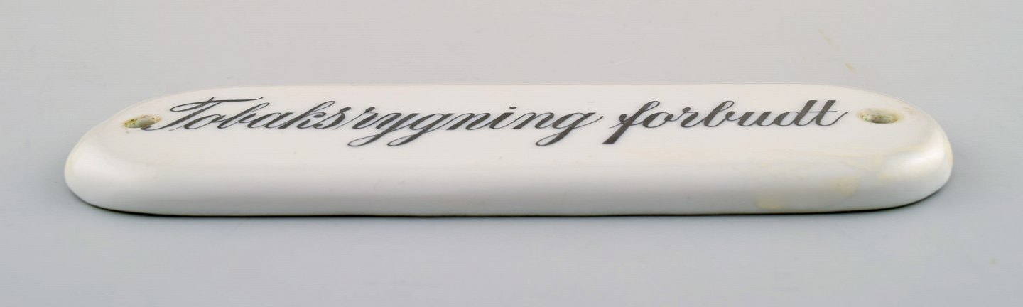 Royal Copenhagen skilt i porcelæn "Tobaksrygning forbudt".