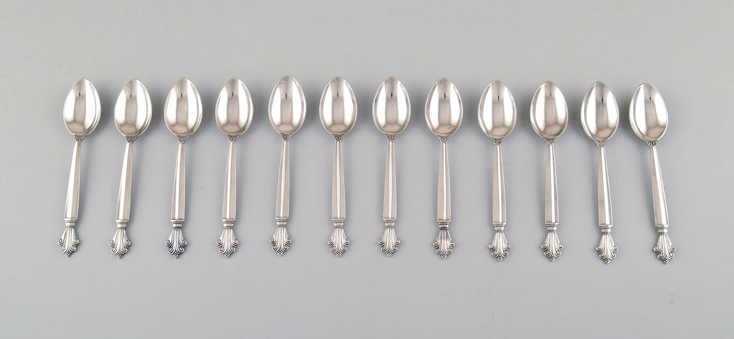 Georg Jensen Acanthus Sterling Silver set of twelve tea spoons. Measures 14.5 cm. In very good condition. Stamped.