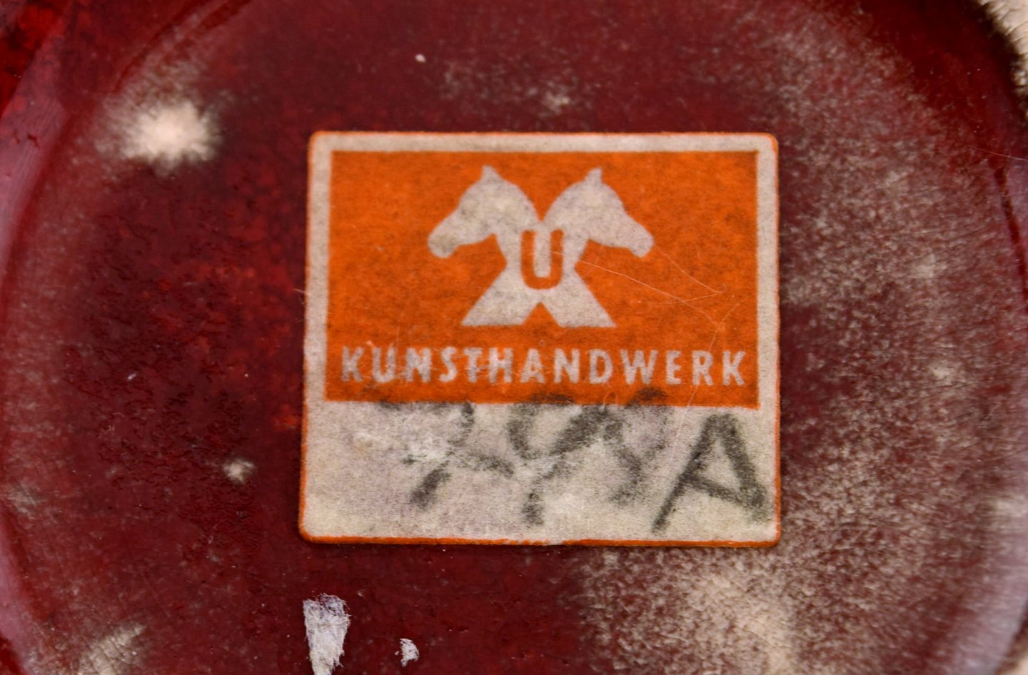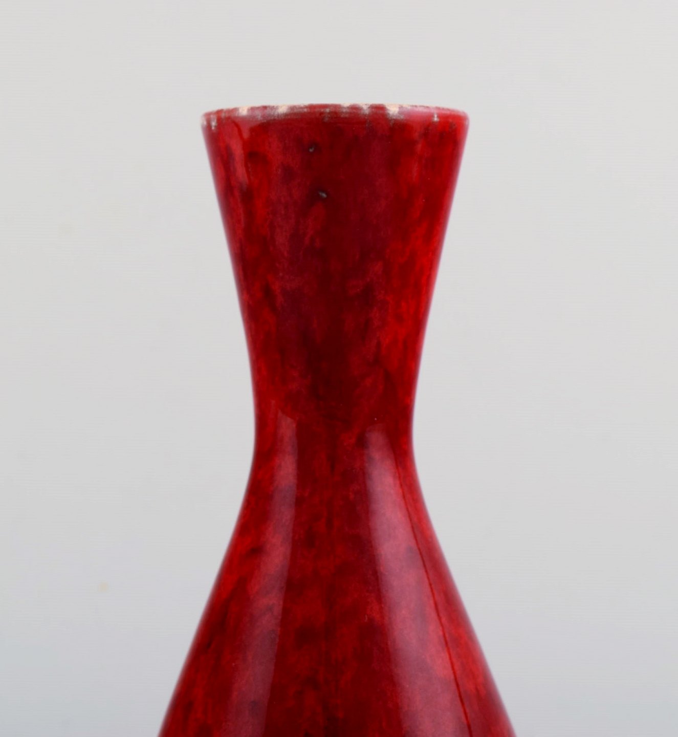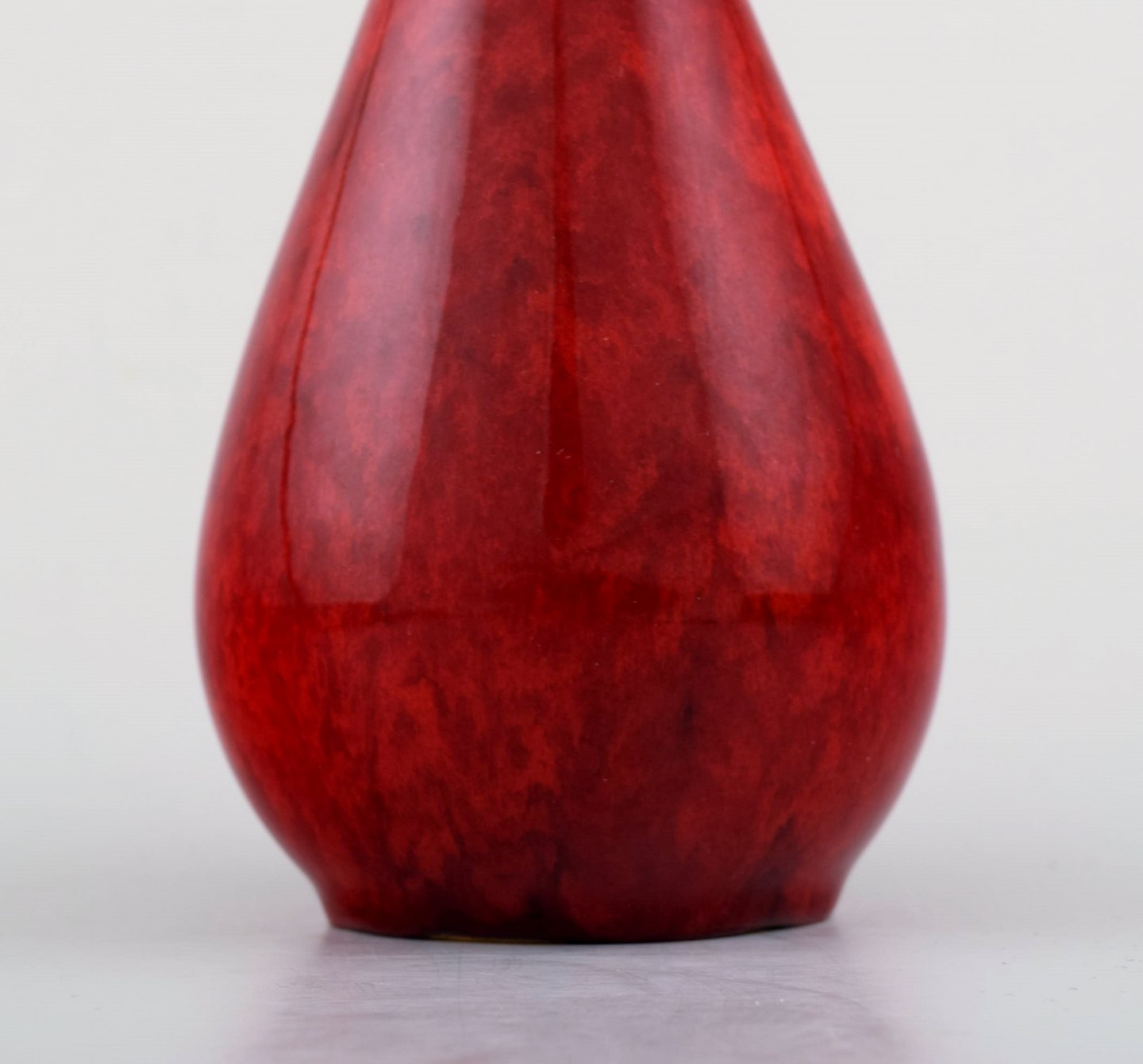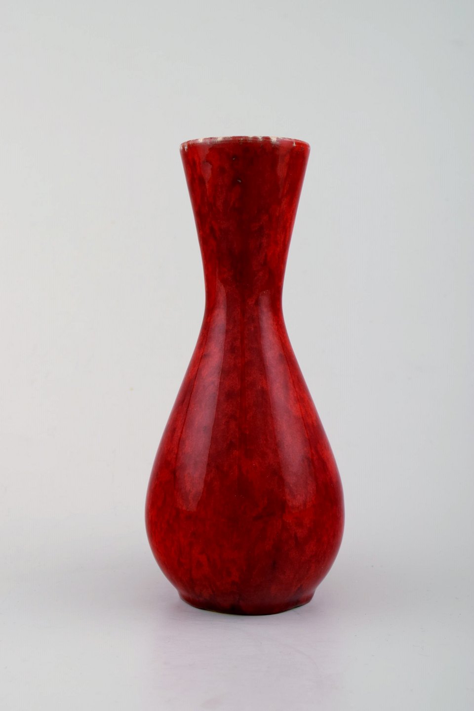 Richard Uhlemeyer, German ceramist. Ceramic vase, beautiful crackled glaze in red shades. Germany, 1950 s. Measures 21 cm. x 9 cm. In perfect condition. Stamped.