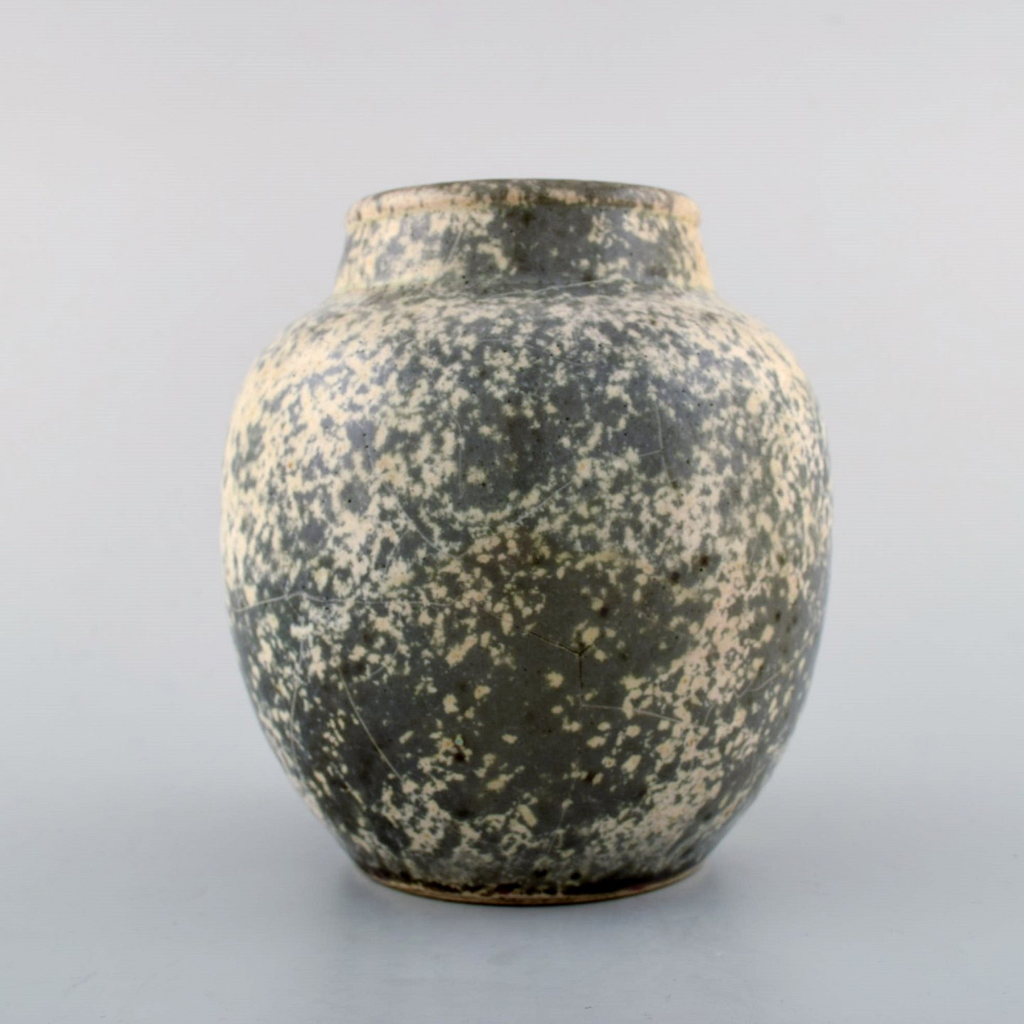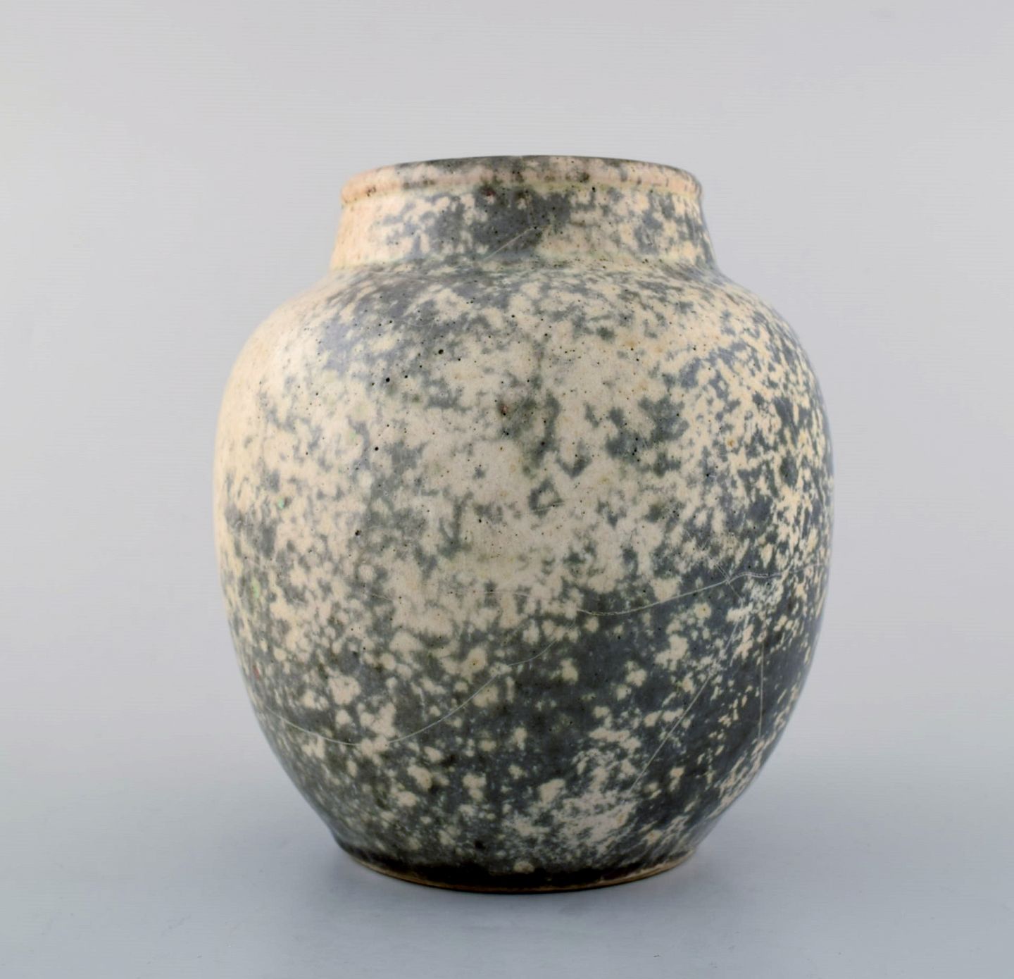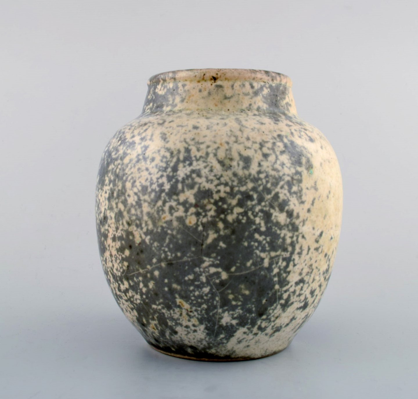 Keramikvase, smuk krakeleret glasur i grå nuancer.