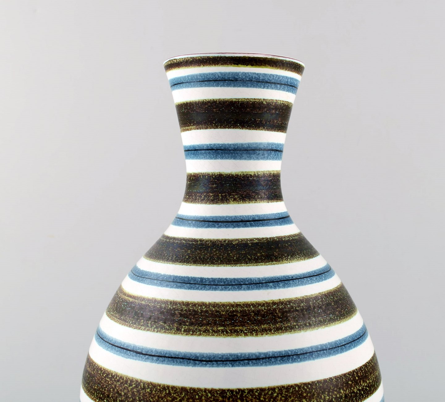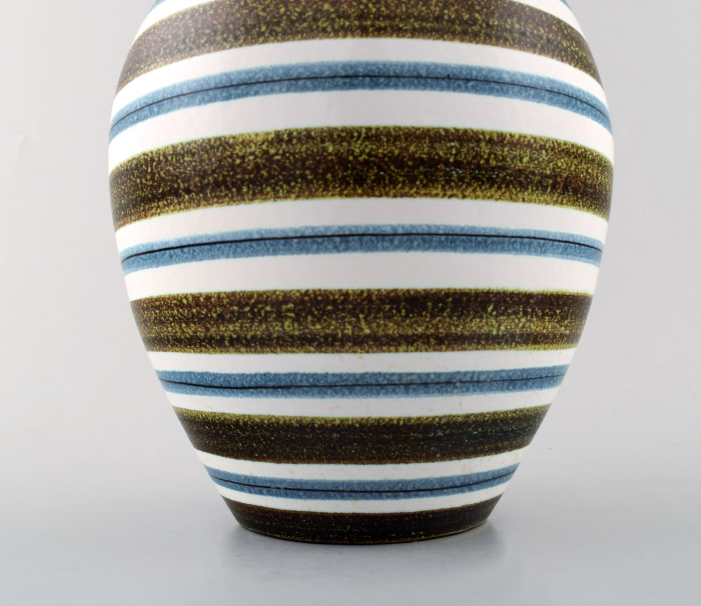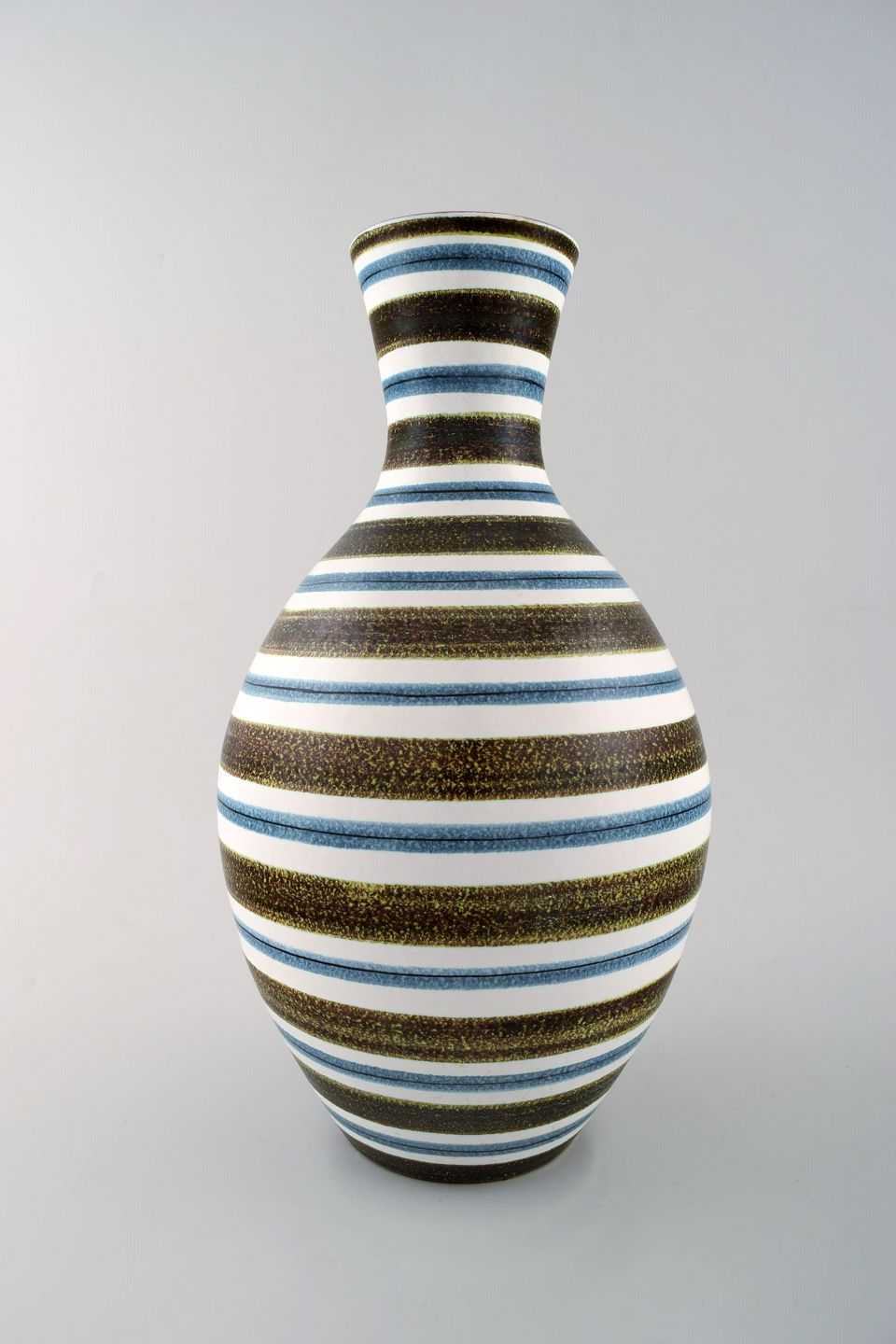 Gustavsberg, Sverige, stor keramikvase med striber af Stig Lindberg, svensk keramiker.