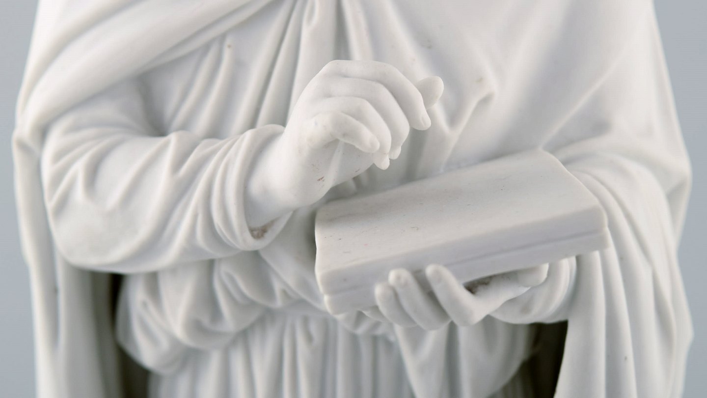 Sjælden stor antik Royal Copenhagen figur/discipel/apostel efter Thorvaldsen. 1860-1880. Fremstår i flot stand. Stemplet. Højde 32 cm. Diameter 11 cm. Biscuit.