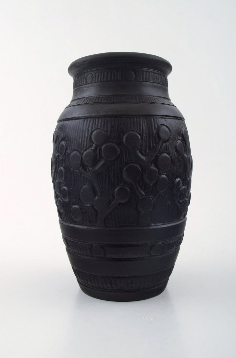 Hjorth skønvirke keramikvase i Bindesbøll stil. Ca. 1890´erne. Måler : 16,5 cm x 10 cm. I perfekt stand. Stemplet. Modelnummer 747