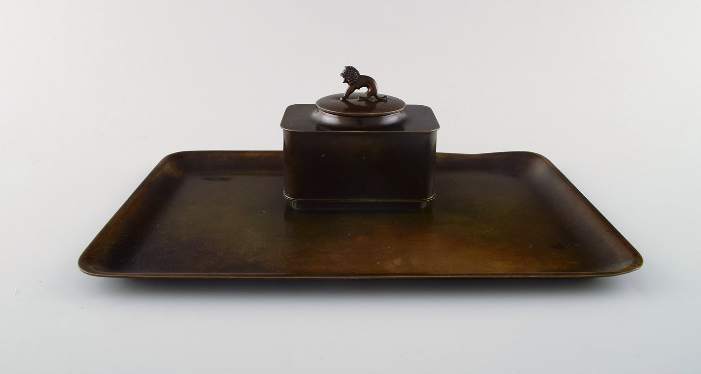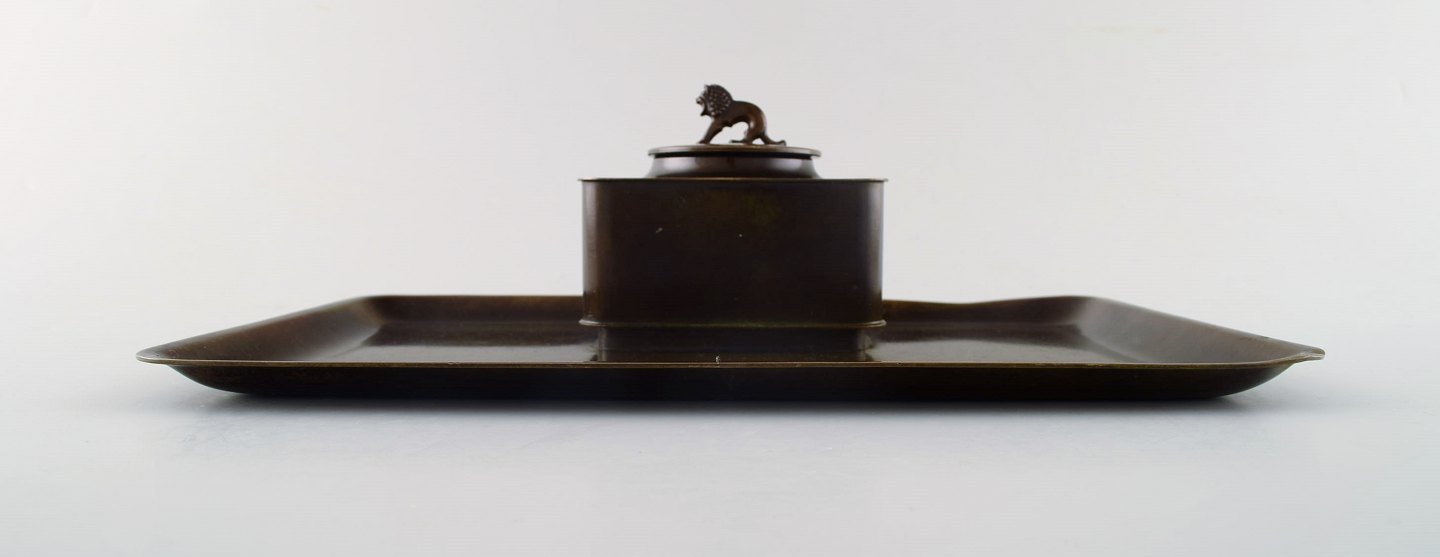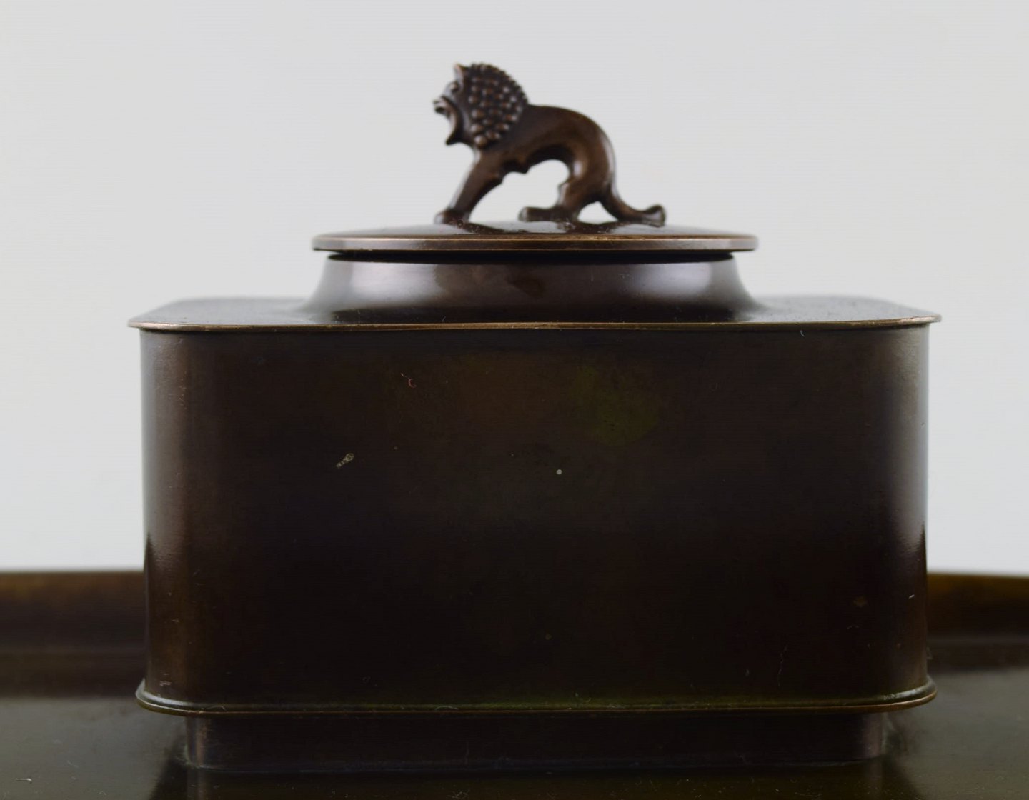 Just Andersen writing kit/inkwell in alloy bronze. Model number LB 1820. Stamped. Very good condition, nice patina. Measures 29.5cm x 20cm x 9.5cm.