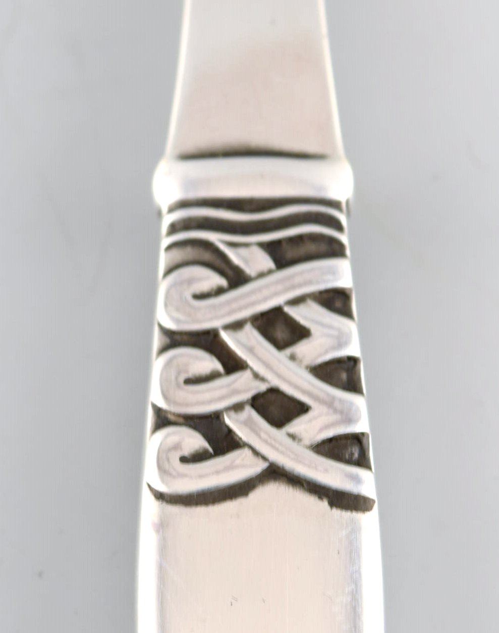 Georg Jensen Sterling Sølv. Ladby pålægsgaffel. Måler: 15 cm. I flot stand. Tidligt stempel. 1933-1945.