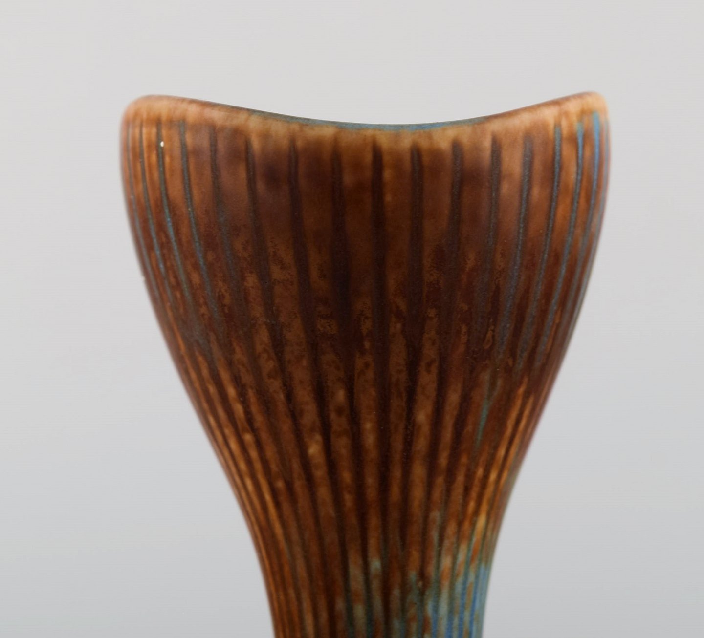 Stor Rörstrand/Rørstrand stentøjsvase af Gunnar Nylund. Måler: 24,5 cm x 9, cm. I perfekt stand. Flot glasur i brune og blå nuancer. 2. sortering. Stemplet.