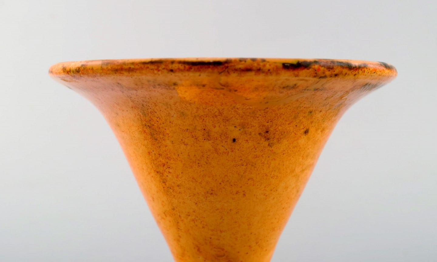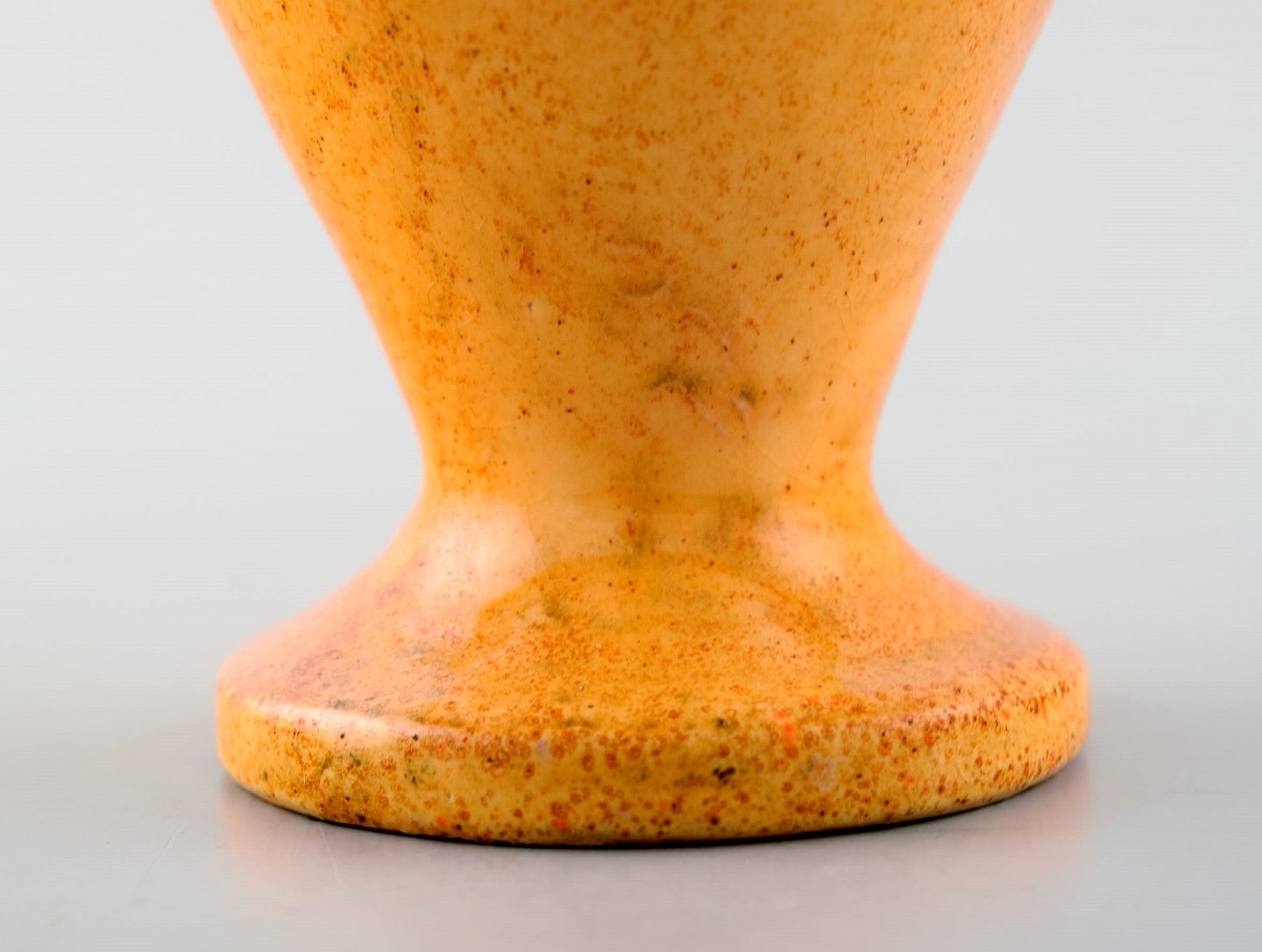 Svend Hammershøi for Kähler, HAK, glaseret stentøjsvase. I perfekt stand. Flot urangul glasur. Stemplet. Måler 12 cm. x 10 cm.