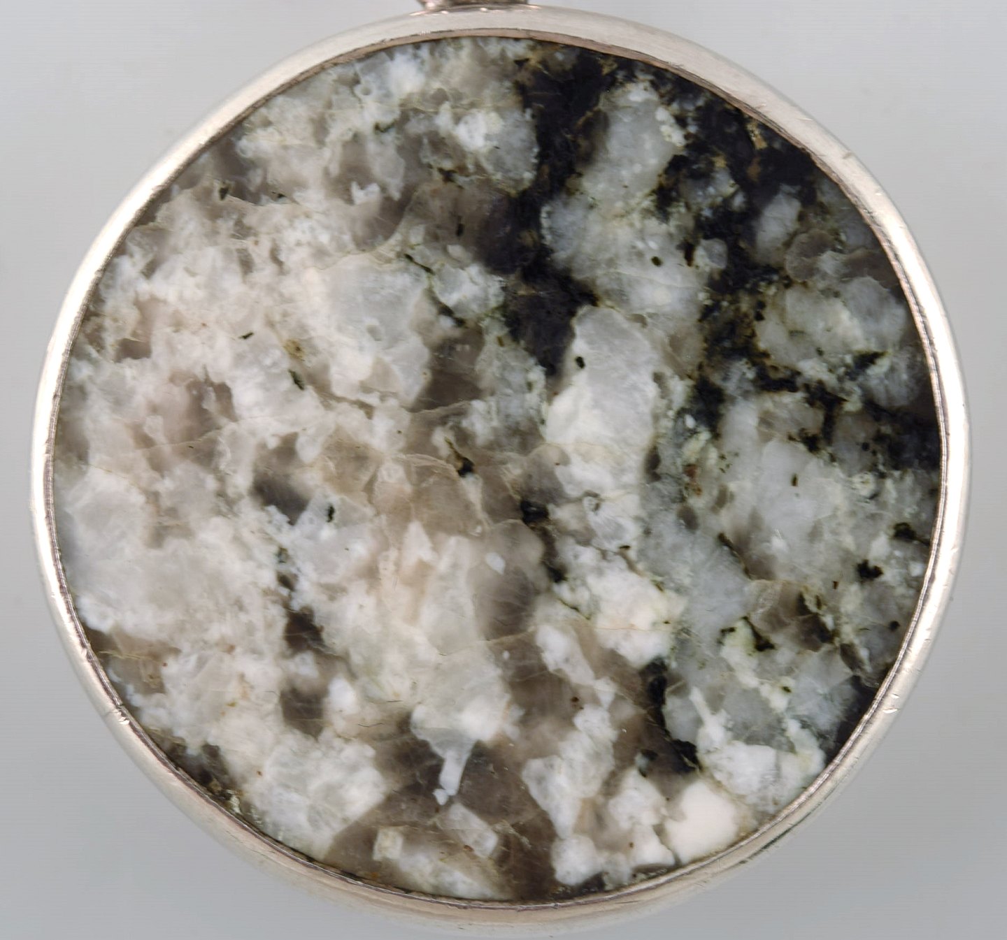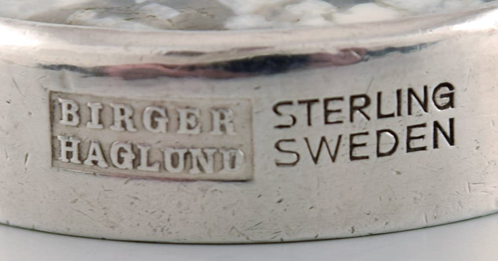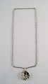Svensk modernistisk halskæde i sterlingsølv af Birger Haglund. Vedhæng i sten. Stilrent svenskt design. I flot stand Kæden måler: 63 cm. Vedhæng diameter: 3,5 cm. Stemplet.