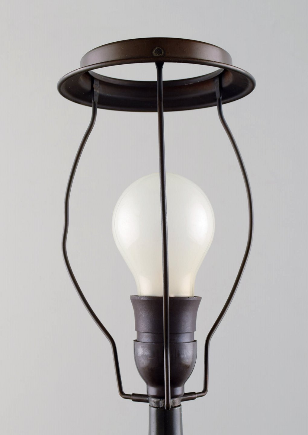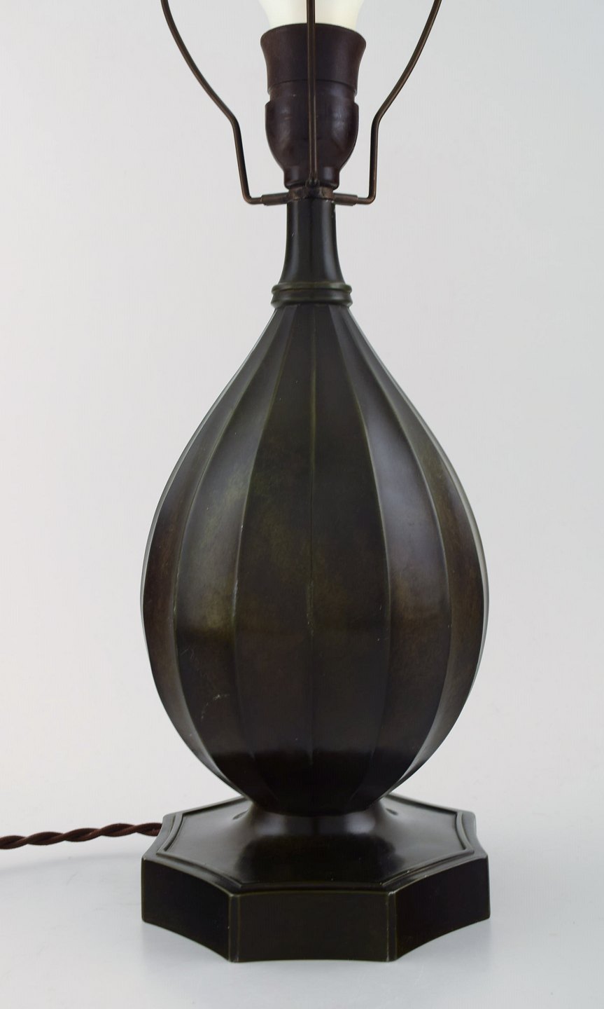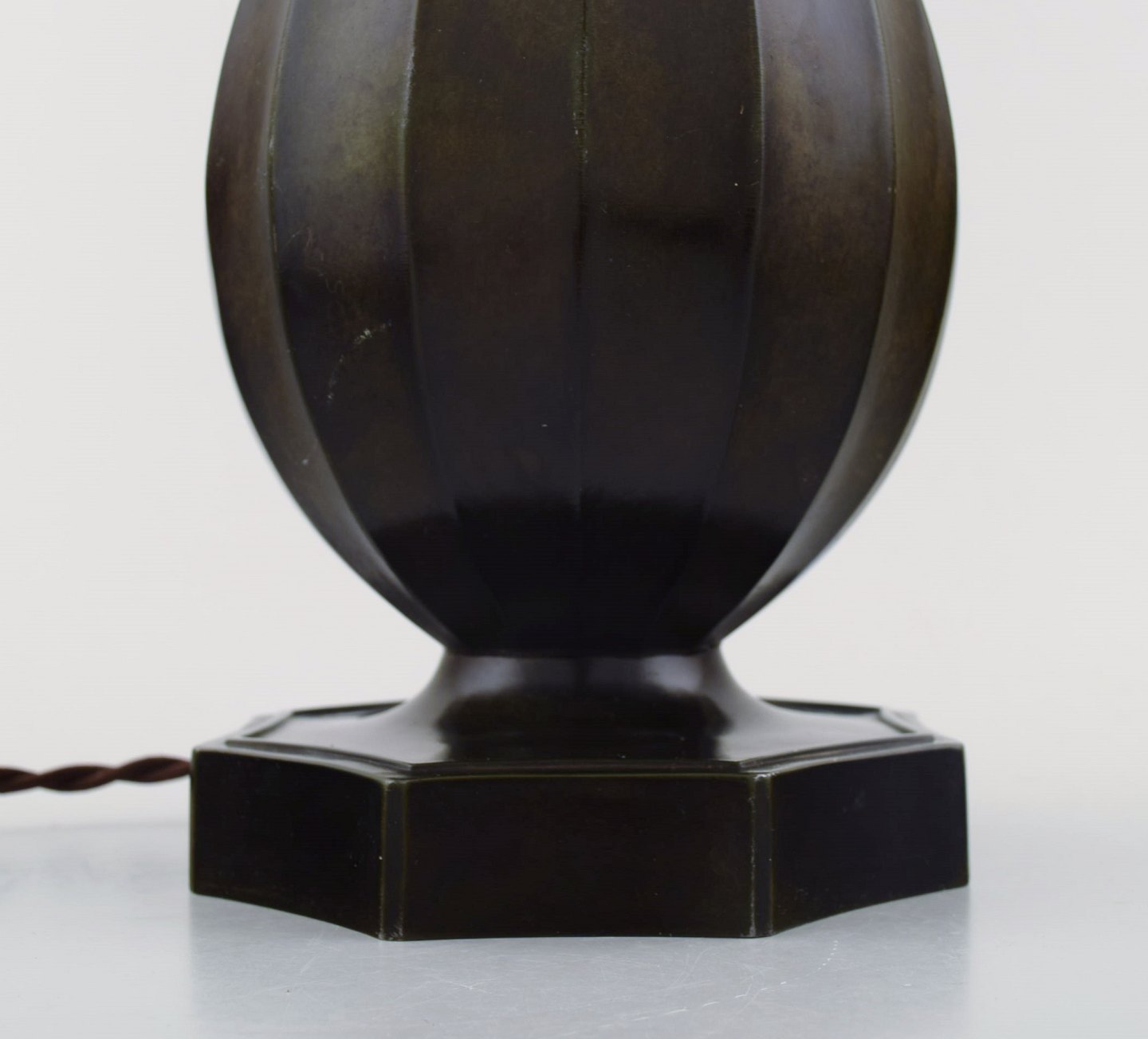 Just Andersen (1884-1943). Bordlampe af patineret diskometal. Modelnummer 1860. Måler: 29 cm. Med fatning 47 cm. I flot stand, perfekt patina. Stemplet.
