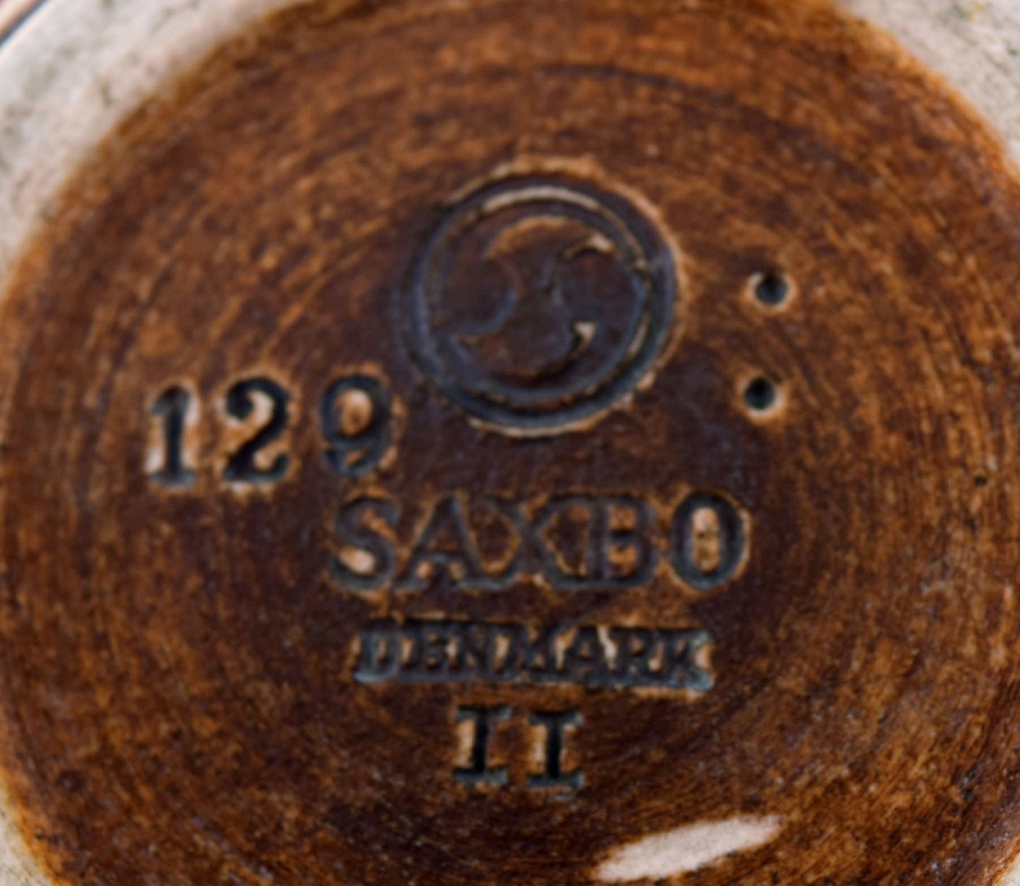 Udført og stemplet hos Saxbo, Danmark.