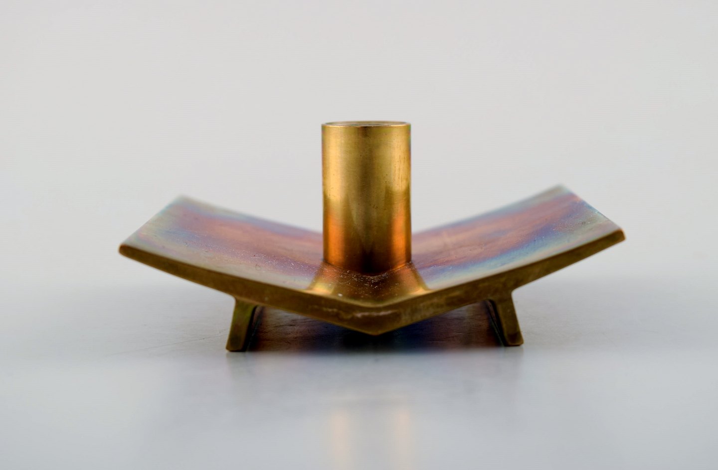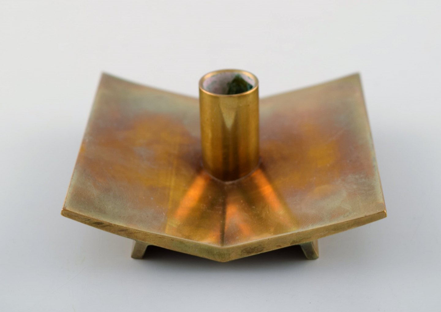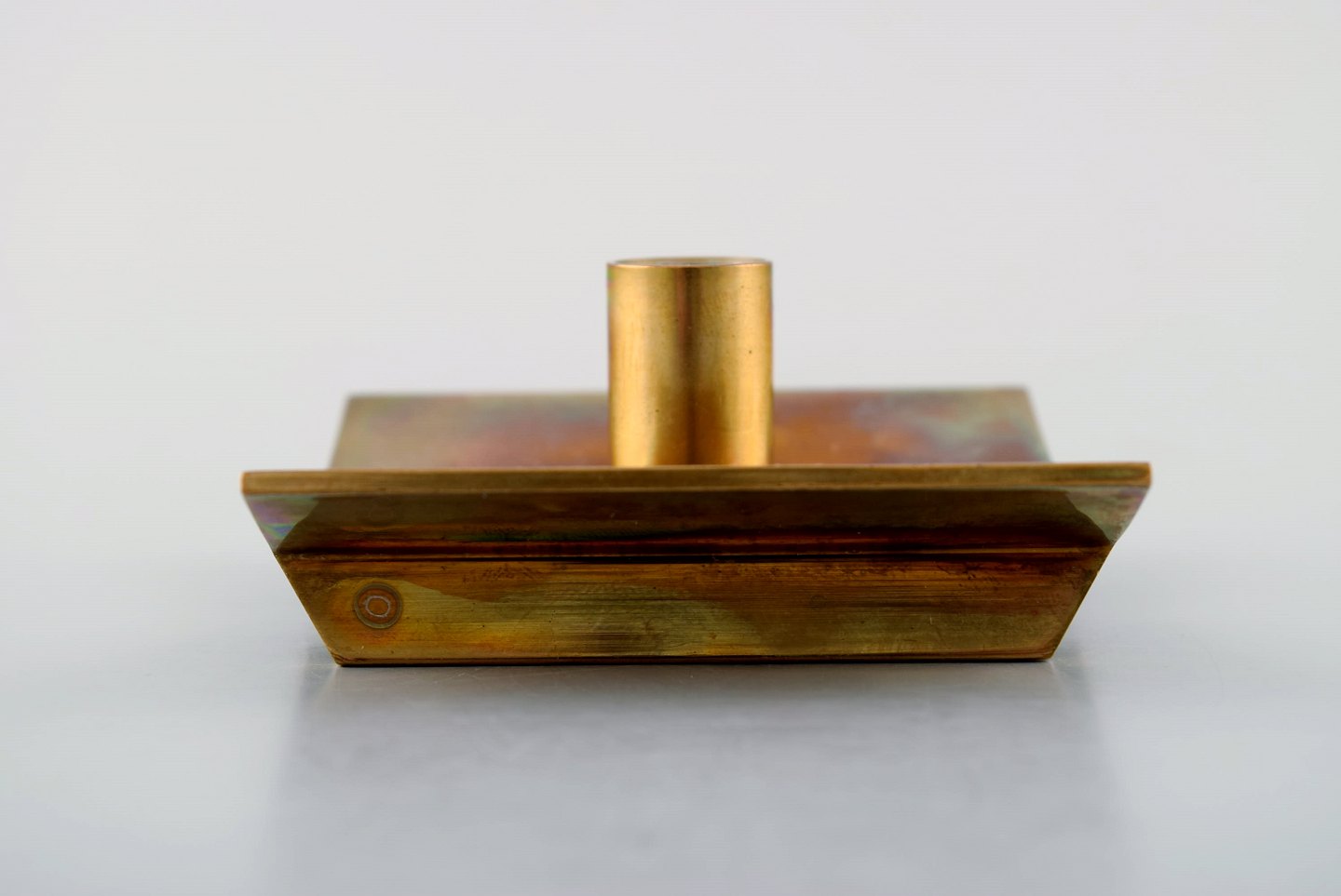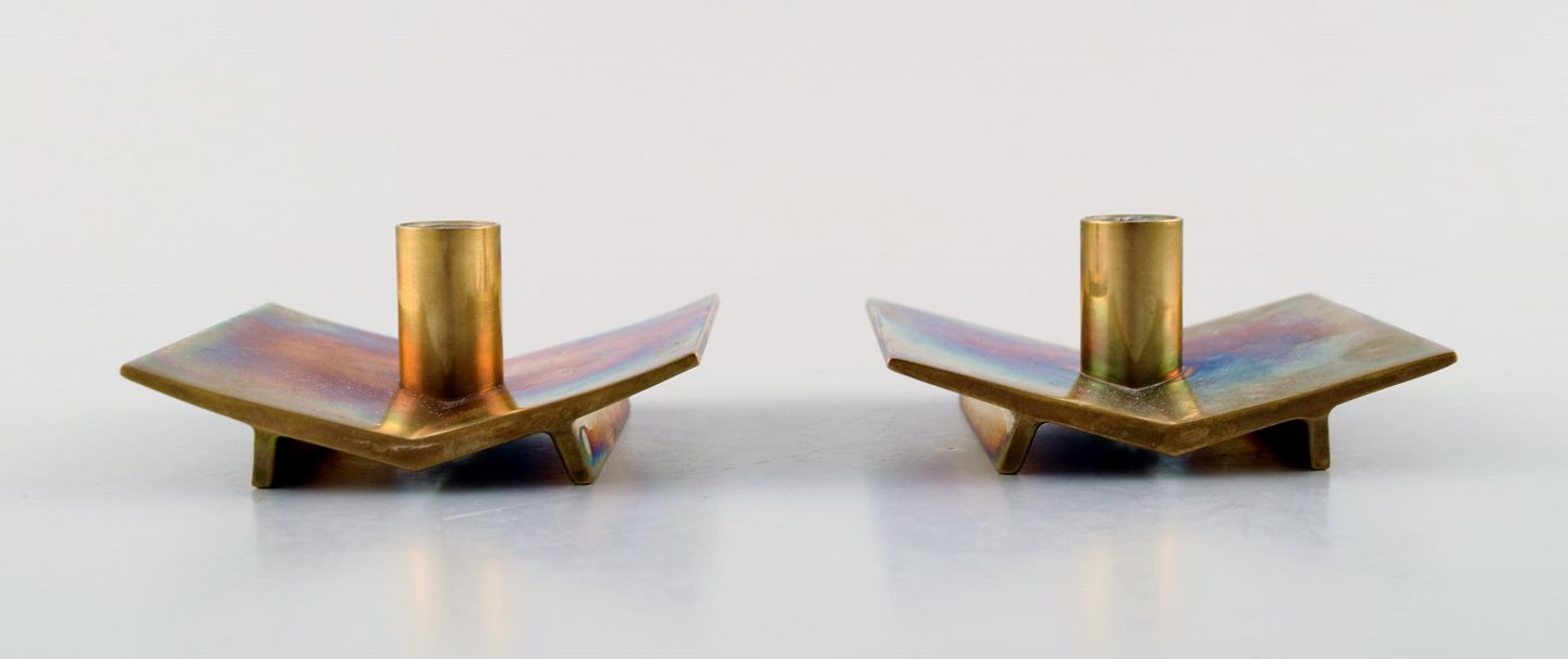 Par skulpturelle lysestager designet af Pierre Forsell for Skultuna (Sverige) i 1950'erne. Sjældne. Fremstillet af messing. Signeret under bunden. Modelnummer 70. Måler: 7,5 cm x 7 cm x 4 cm. I flot stand.