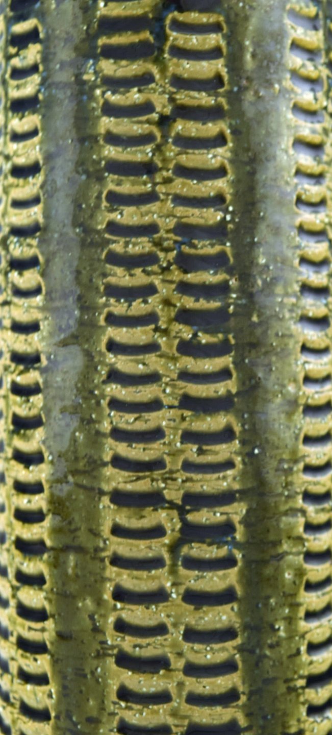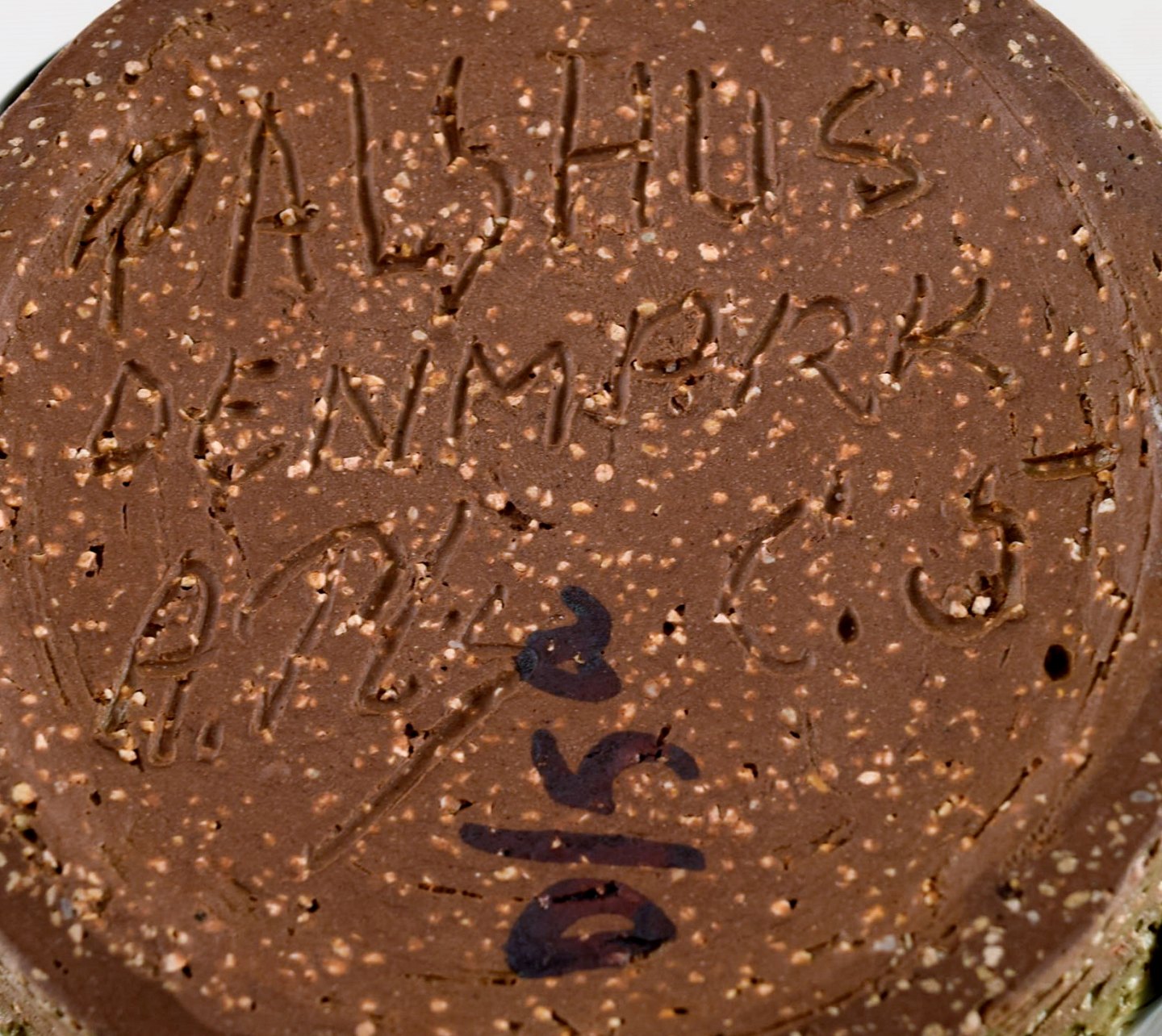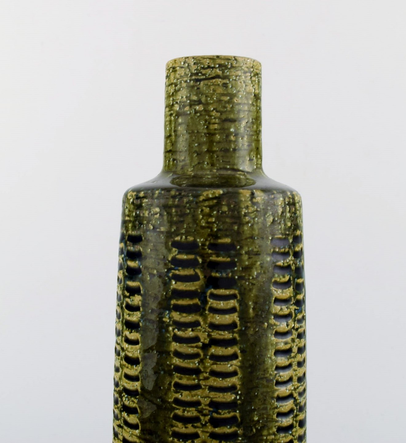 Keramik vase i olivengrøn glasur fra Palshus af Per Linnemann-Schmidt, en anerkendt dansk keramiker. Fint eksempel på moderne dansk keramik fra 1970´erne.
