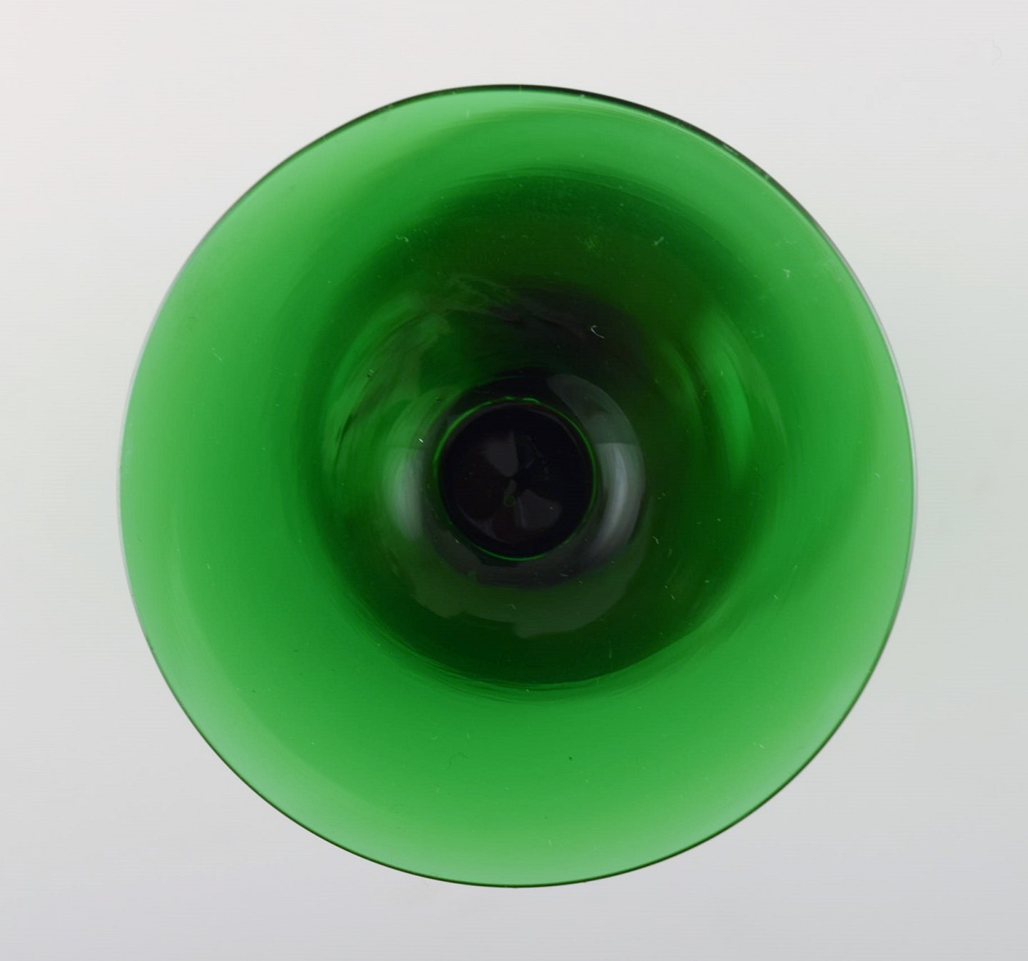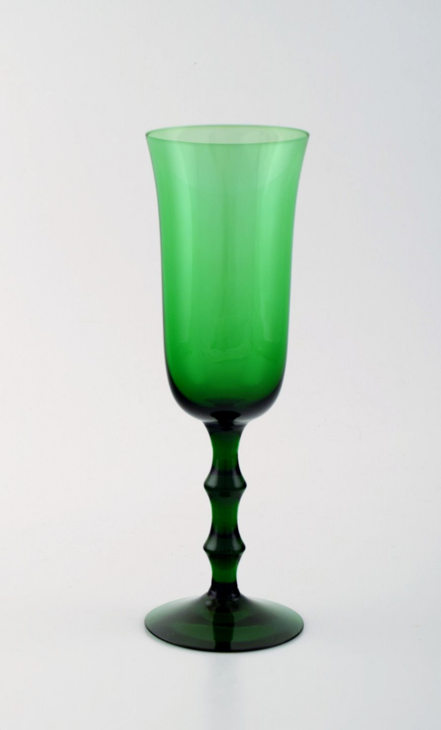 SIMON GATE for Orrefors, Et sæt på 12 grønne champagneglas i kunstglas..