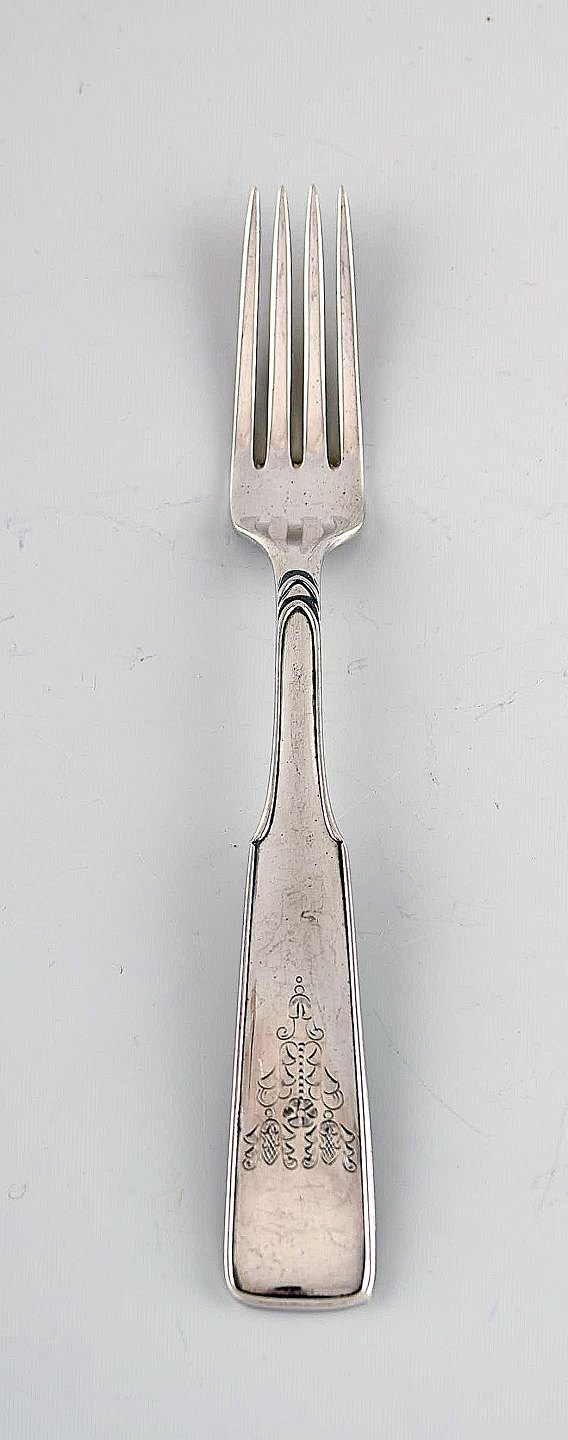 Hans Hansen sølvtøj Arvesølv nr. 2. 13 stk frokostgafler i 3-tårnet helsølv. Måler : 18 cm. Perfekt stand. Stemplet. 13 stk. på lager