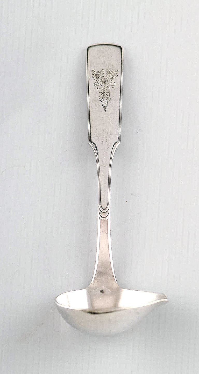 Hans Hansen sølvtøj Arvesølv nr. 2. Smørske/lille sauceske i 3-tårnet helsølv. 1938.