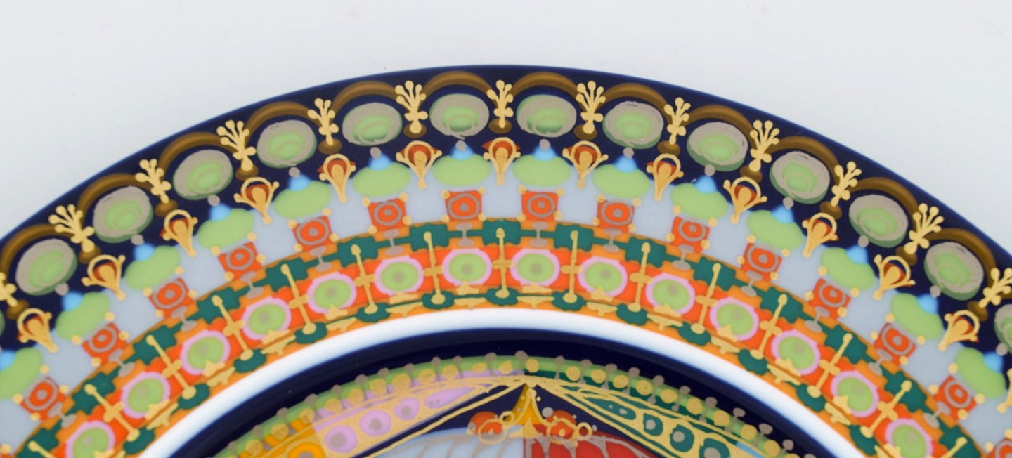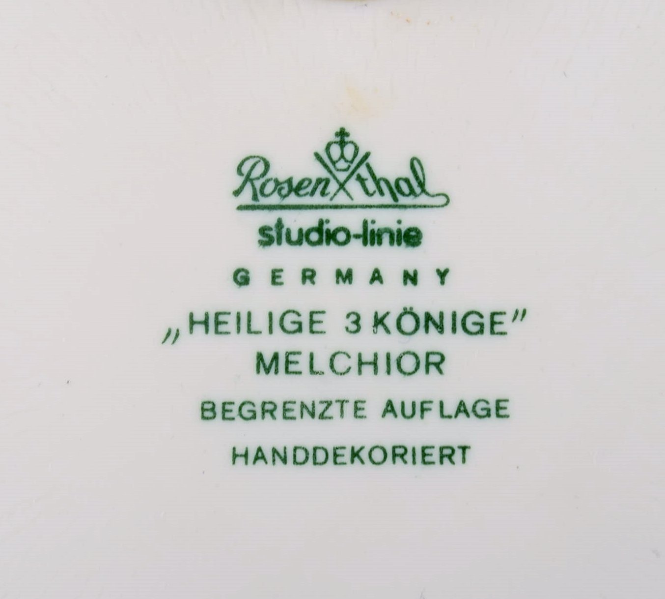 Sjælden håndmalet Rosenthal Bjørn Wiinblad juleplatte fra 1973. "Melchior". Stemplet. 29 cm. i diameter. I perfekt stand.