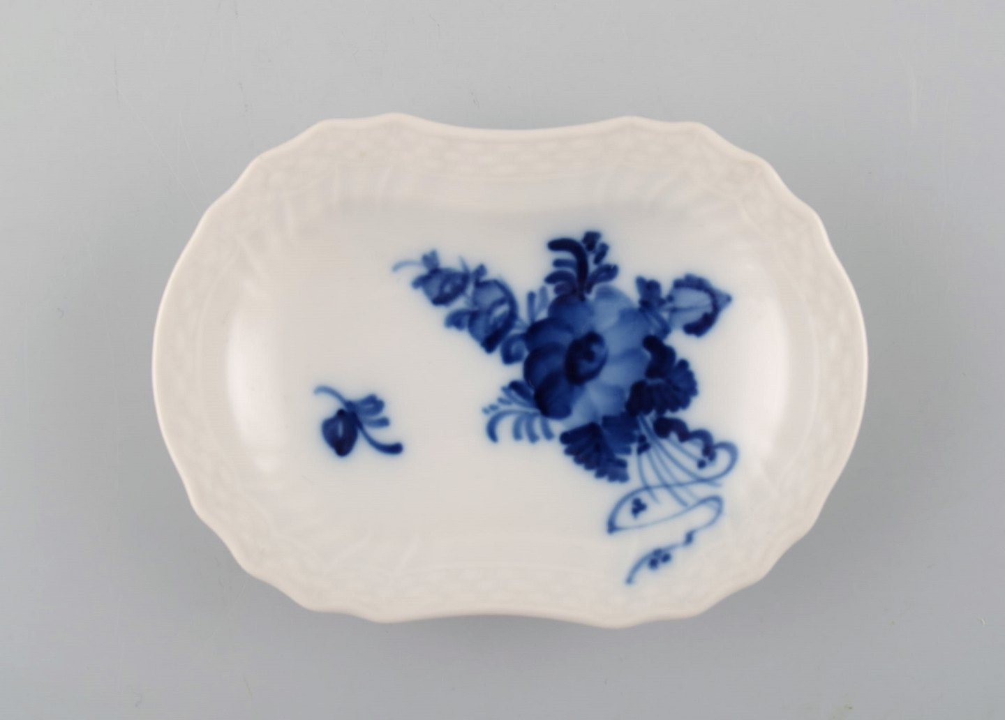 2stk. Kgl. Blå blomst svejfet Kongelig porcelæn. Royal Copenhagen Blå blomst svejfet. Kaviarskål nr. 1802. Måler: 10 cm x 7 cm. I flot stand.