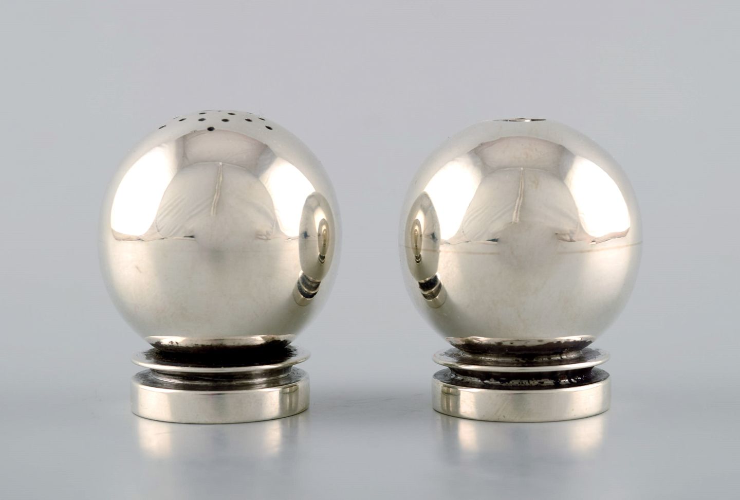 Georg Jensen "Pyramid" art deco salt & pepper set in sterling silver. Designed by Harald Nielsen (1892-1977) in 1930. Measures: 4.7 cm x 4 cm. Early stamp: 1933-1944 In very good condition.