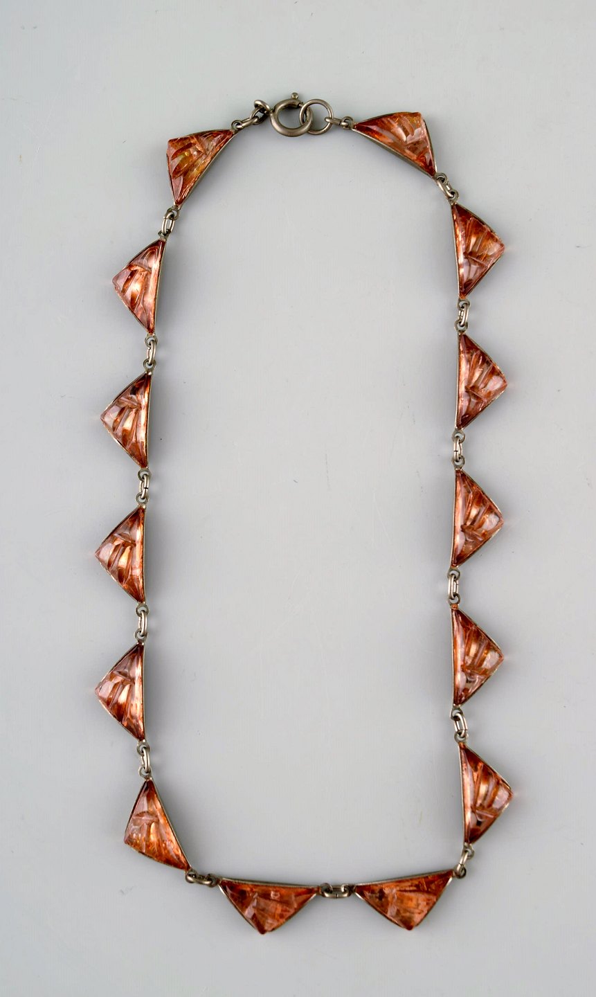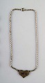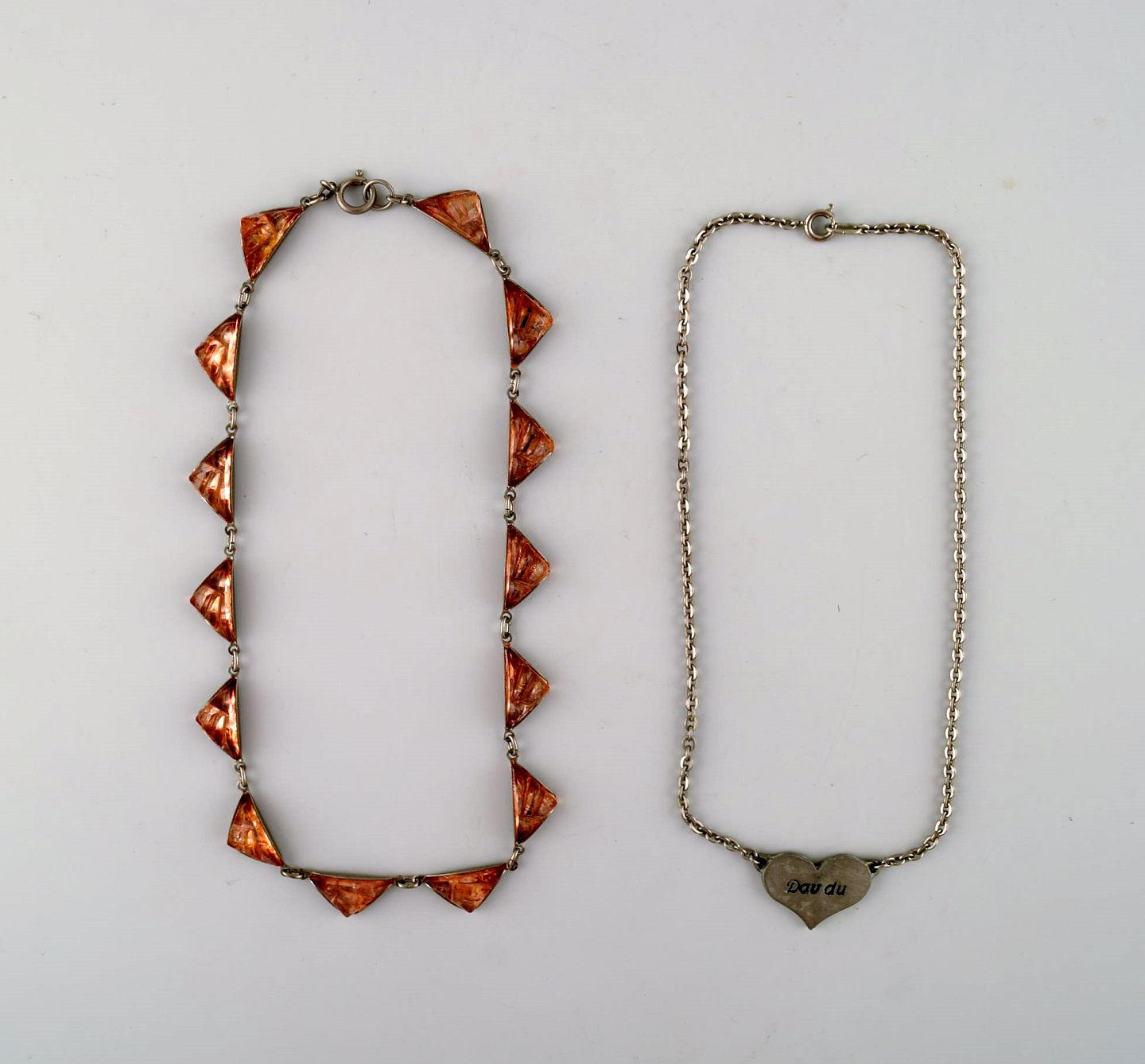 Lysgårds design. Danmark. 2 stk Halskæder i tin, den ene med hjerte den anden med ravfarvede sten. Moderne design, 60/70'erne.
