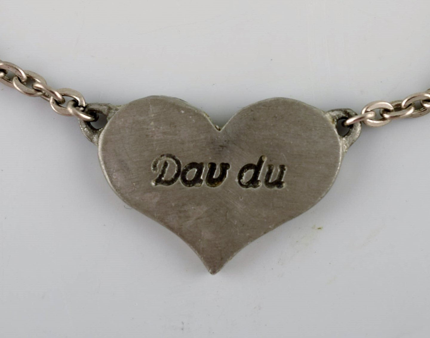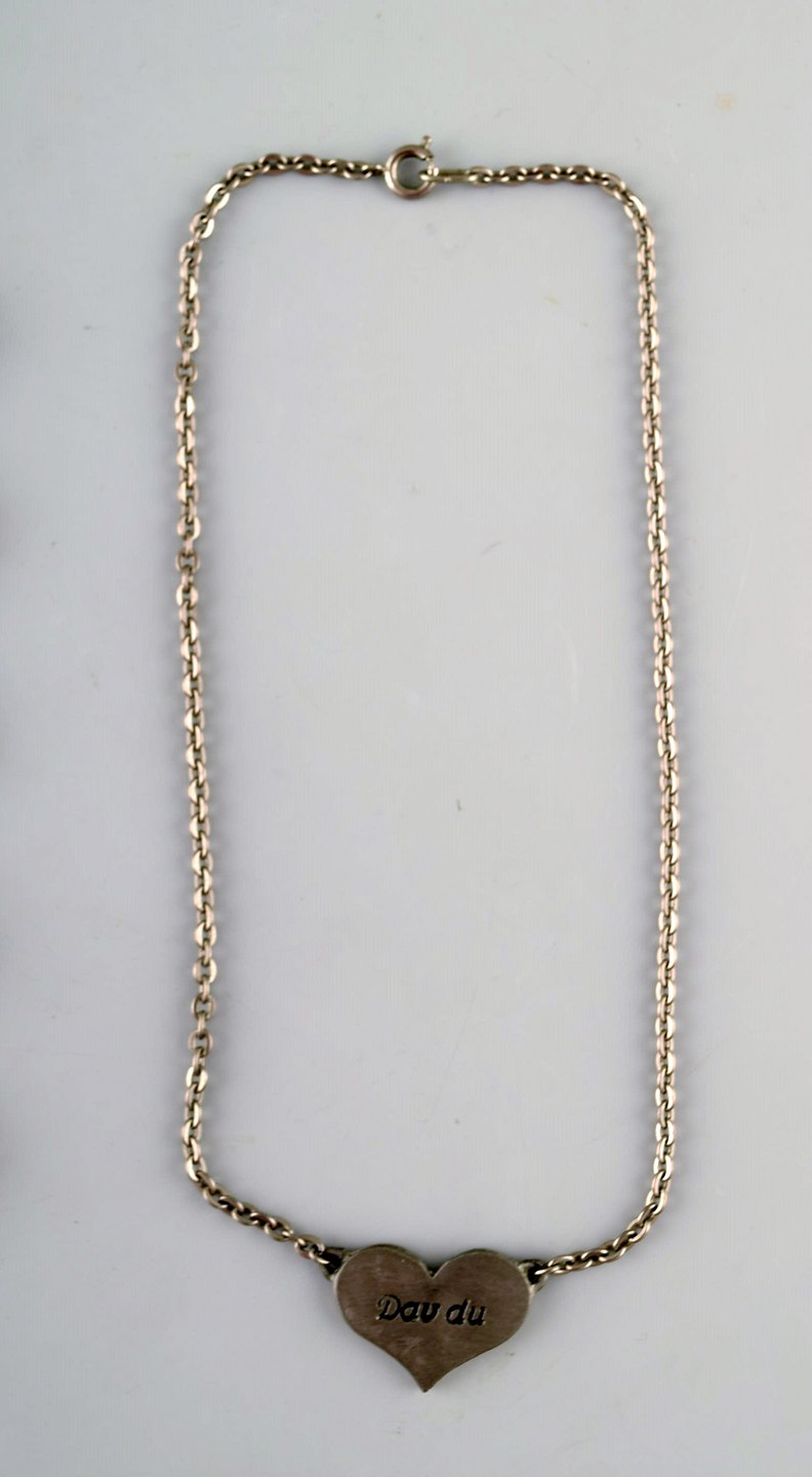 Kæderne måler: 41 cm. Vedhæng (hjerte) måler: 2,6 cm x 2 cm.