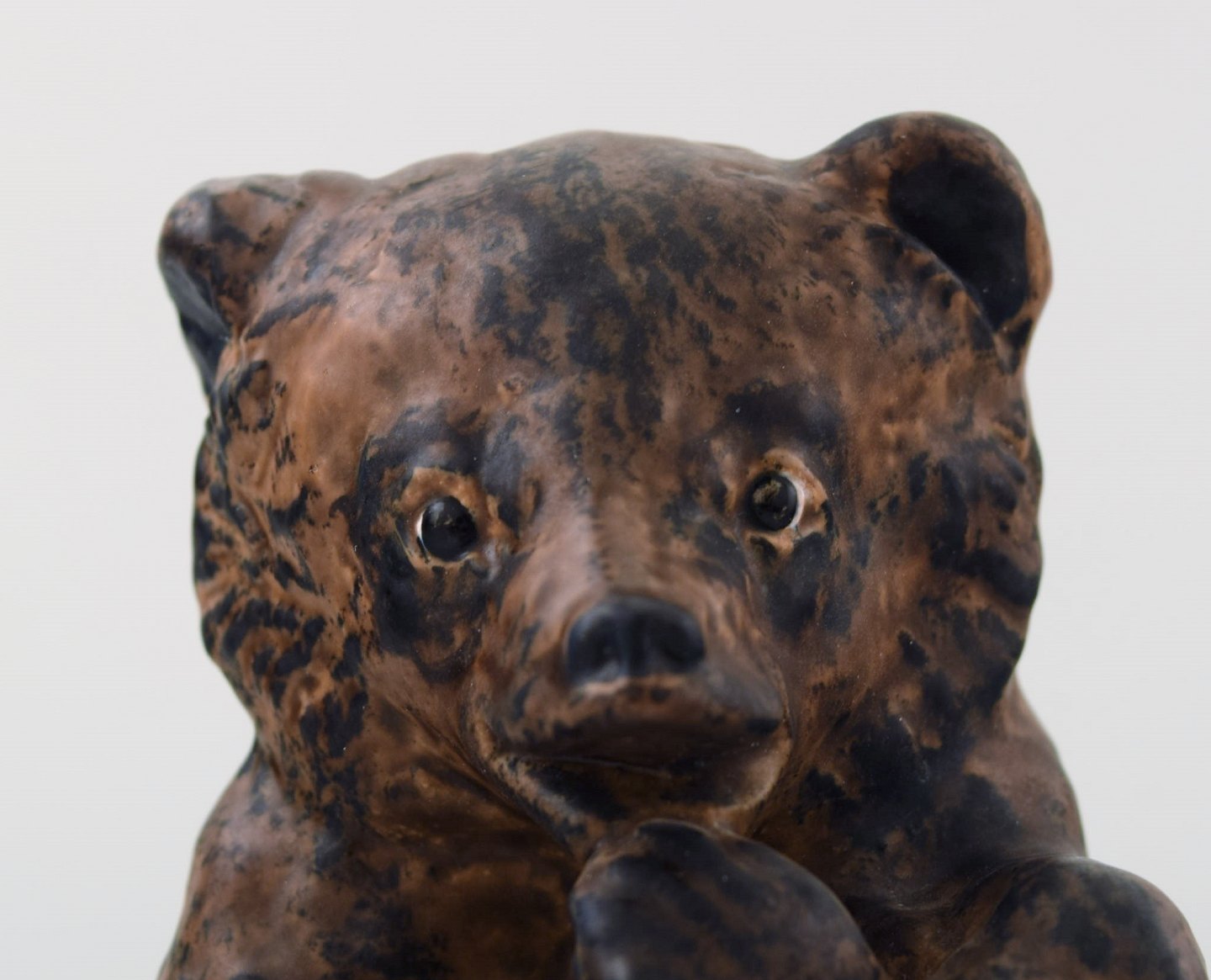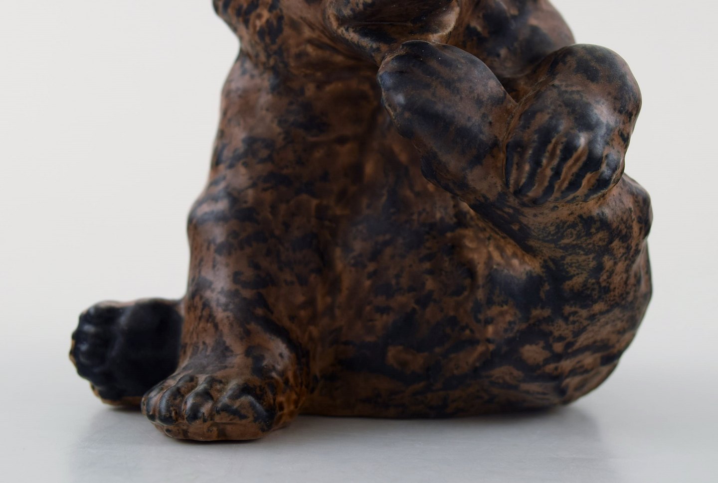 Jeanne Grut for Royal Copenhagen Aluminia fajance. Siddende bjørneunge. Modelnummer 3745. I flot stand. Signeret: JG, Royal Copenhagen Måler: 10,5 cm x 9,5 cm.