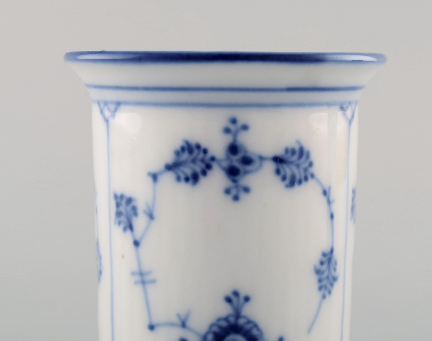 A pair of Royal Copenhagen Blue fluted vases. Measures: 9 cm x 6,5 cm. In perfect condition. 2nd factory quality. Stamped.