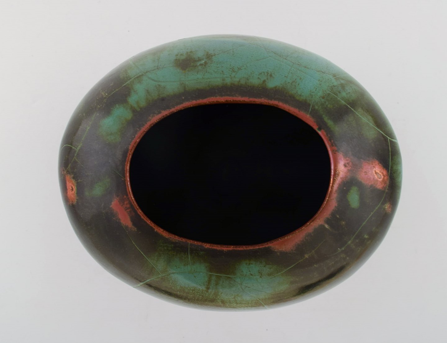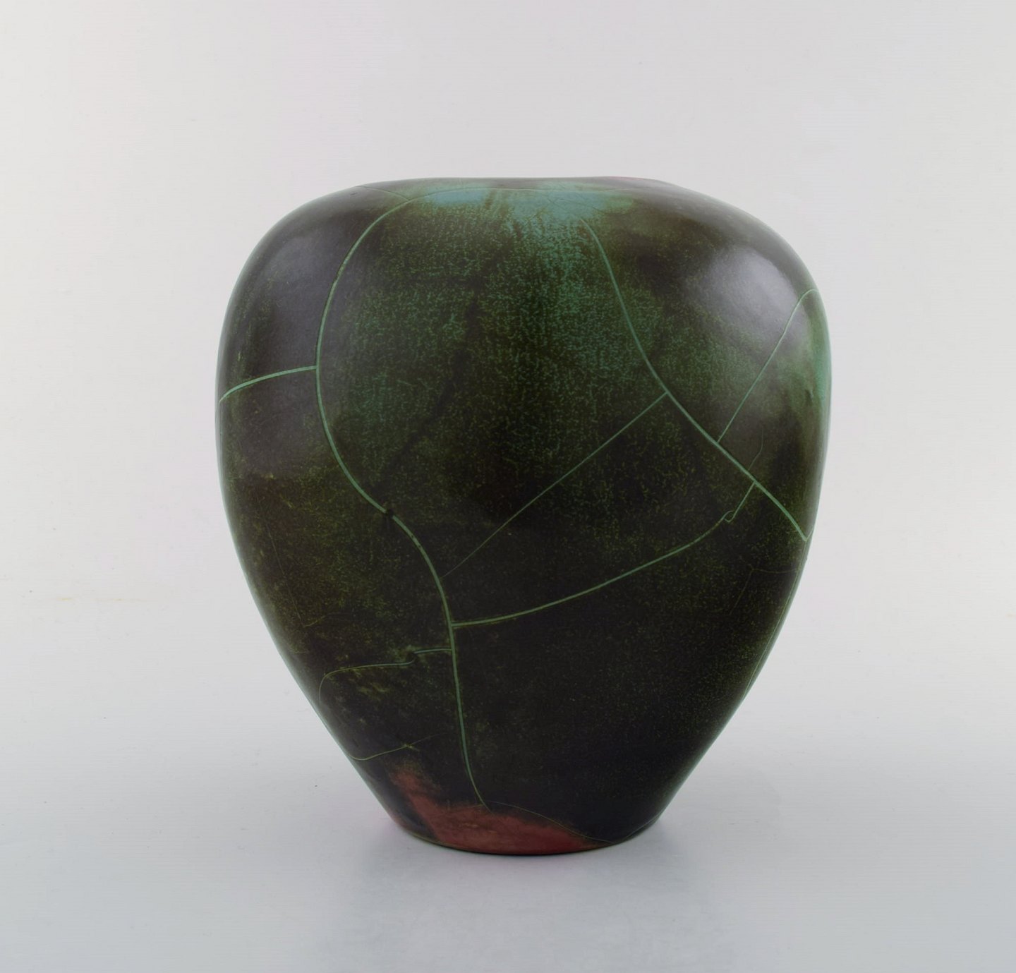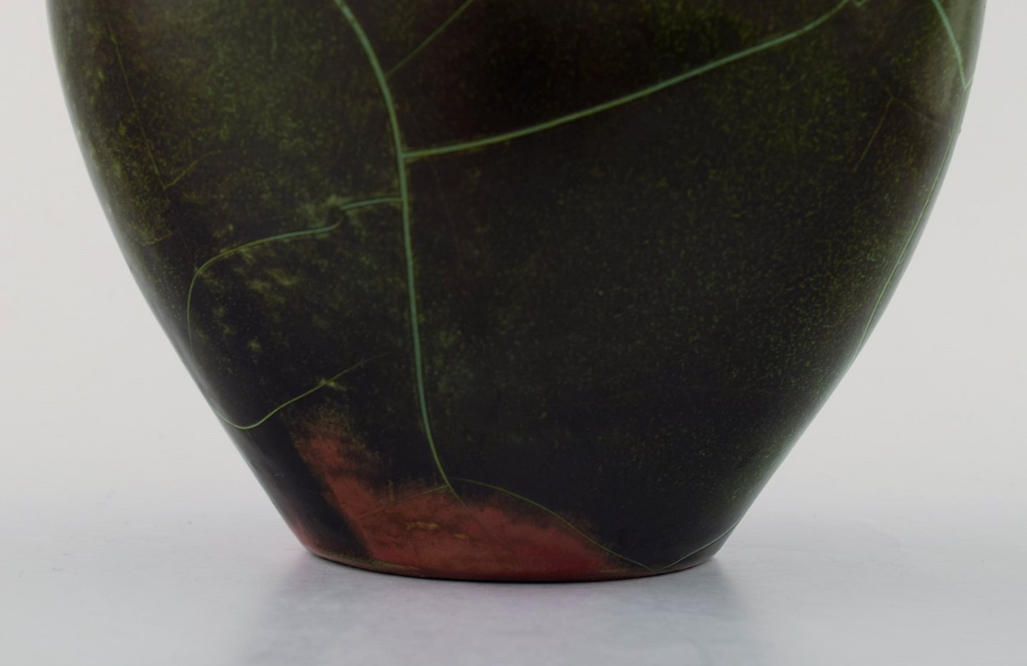 Keramikvase, smuk krakeleret glasur i grønne nuancer.