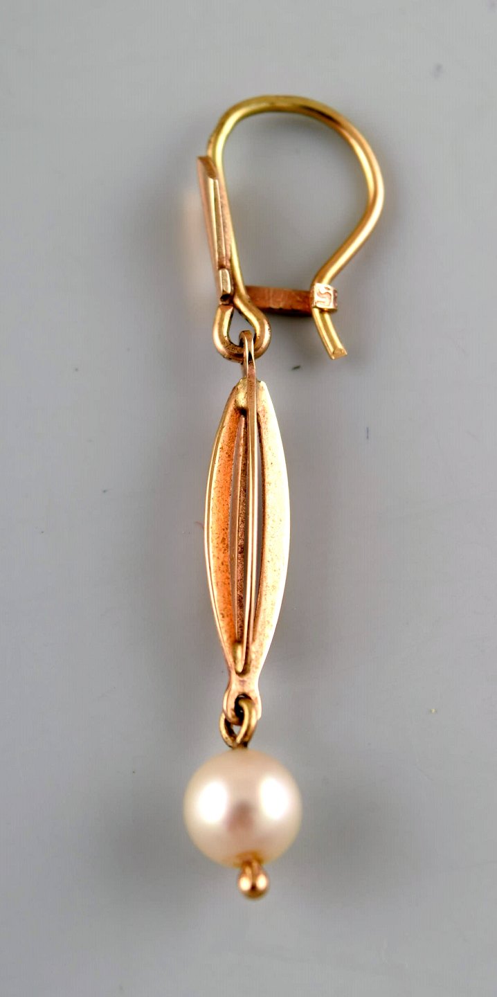 Danske 14K guld ørestikker med Akoya saltvandskulturperler. Midt 1900-tallet.